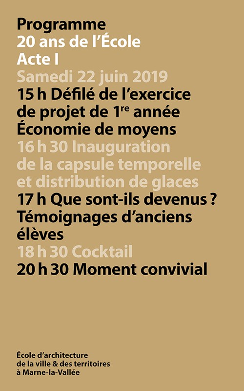 À l'occasion des 20 ans de l'établissement, l'école d'architecture de la ville & des territoires organise ce samedi à partir de 15h00, une après-midi conviviale pour permettre aux anciens étudiants, administratifs et enseignants de se retrouver et d'échanger.