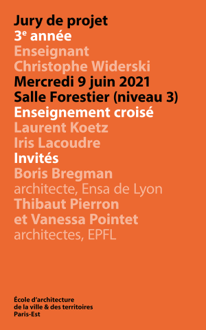 Enseignant Christophe Widerski Enseignement croisé Laurent Koetz Iris Lacoudre Invités Boris Bregman, architecte, Ensa de Lyon Thibaut…