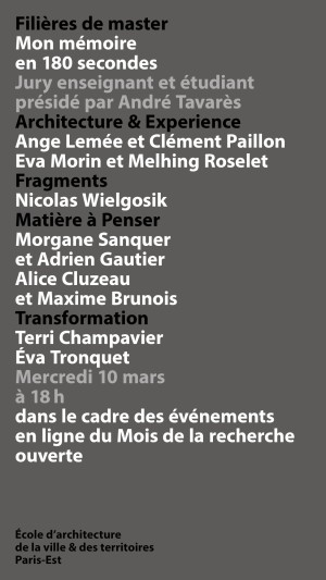 au 30.03.2021Exposition Doctorat en architecture : présentation de travaux