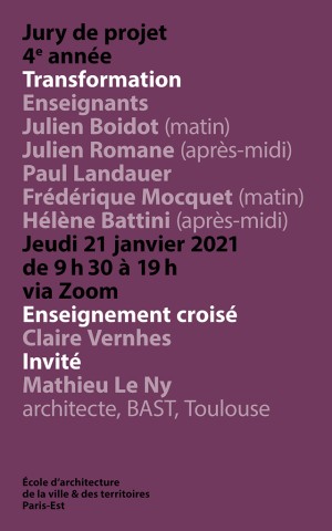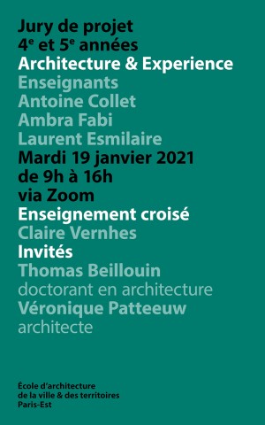 à 09:00ZoomArchitecture & Experience Antoine Collet Ambra Fabi Laurent Esmilaire Enseignement croisé Claire Vernhes Invités Thomas Beillouin…