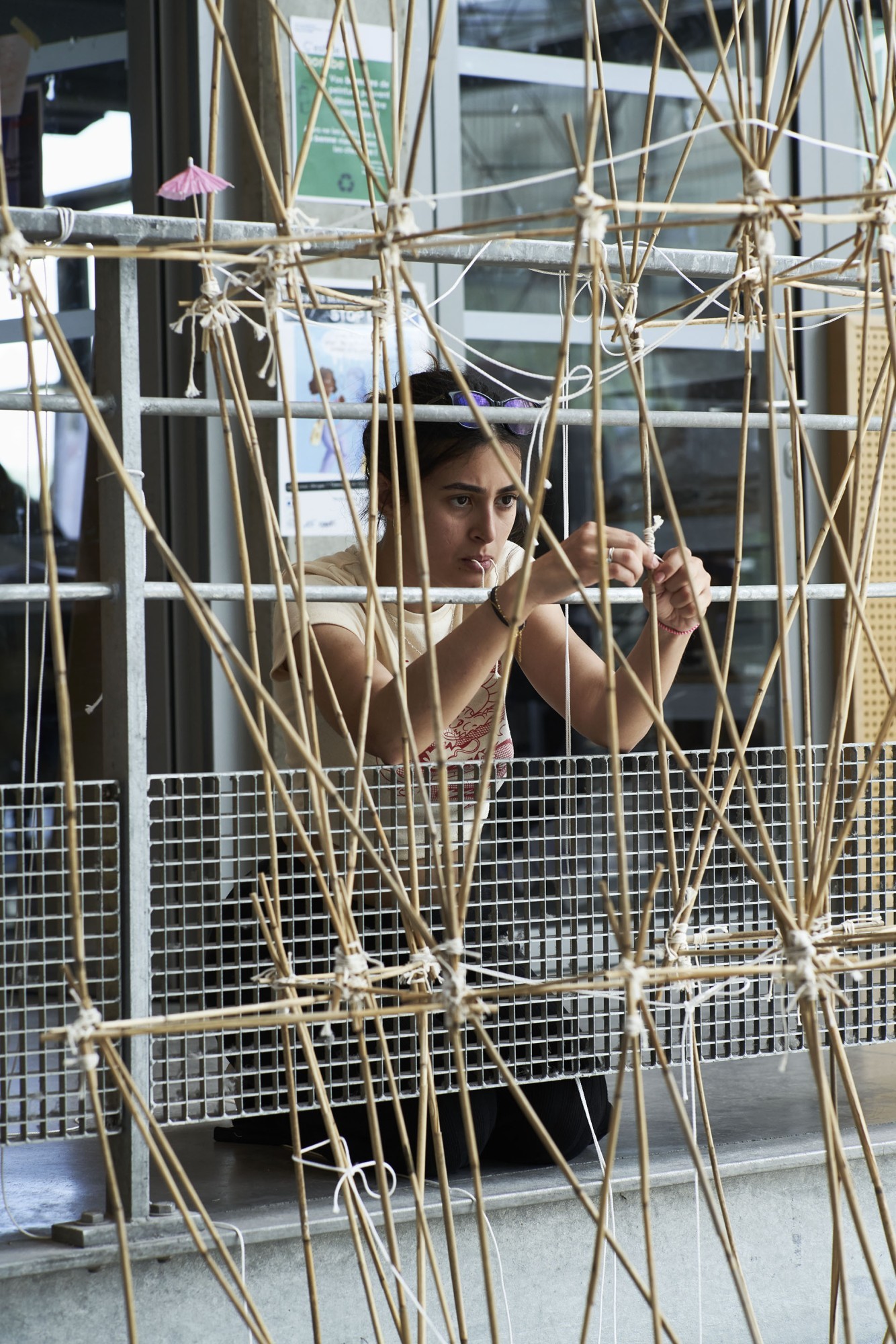 Cette année, l'intensif propose de déployer une série de structures au sein de l’école, répondant à des contraintes climatiques et structurelles spécifiques. Avec des matériaux légers et souples, les étudiants construisent des structures d’ombrage, à l’échelle 1:1, dans une économie de moyens. L’ensemble des structures s’assembleront à l’issue des 15 jours de l’intensif pour former une grande toiture, un abri commun, sous lequel les étudiantes restitueront leurs travaux le samedi 15 juin.