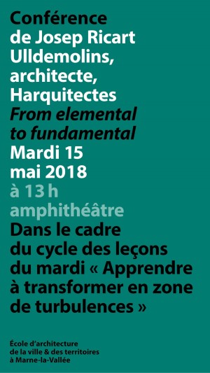 "From elemental to fundamental" Conférence de Josep Ricart Ulldemolins, architecte, fondateur de l'agence Harquitectes Entrée libre sous…