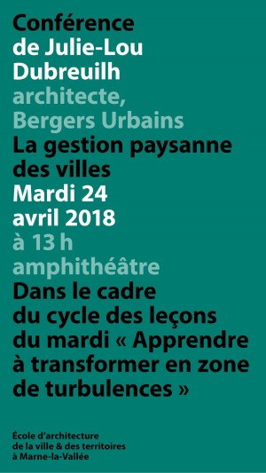 "La gestion paysanne des villes" Conférence de Julie-Lou Dubreuilh, architecte, fondatrice des Bergers Urbains Entrée libre sous réserve de…