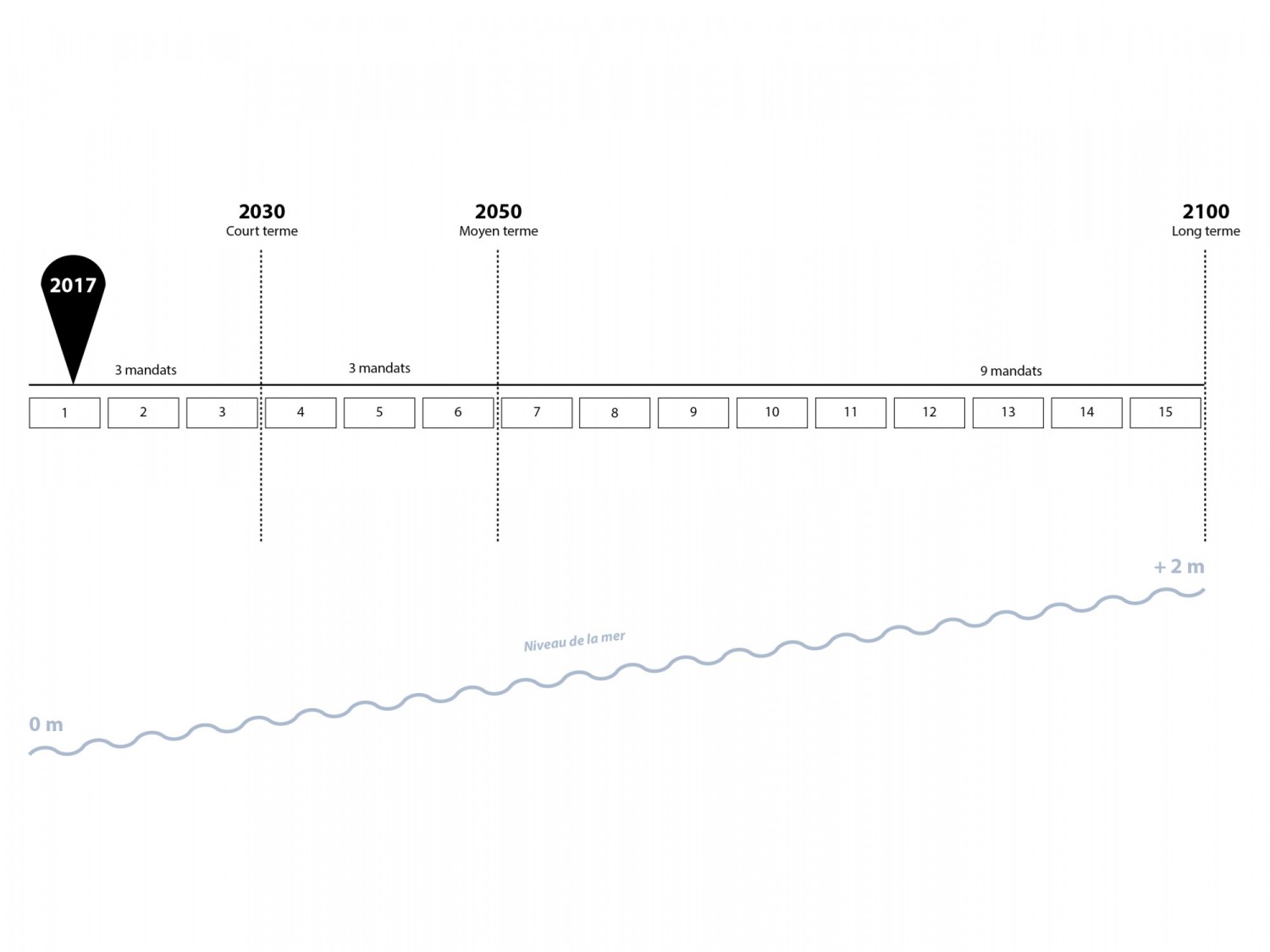En se détachant des limites administratives et profitant de la nouvelle réorganisation territoriale, le projet amorce une réflexion prenant en compte la totalité du territoire afin d’établir une vision commune permettant l’adaptation de Cherbourg-en-Cotentin aux risques littoraux.