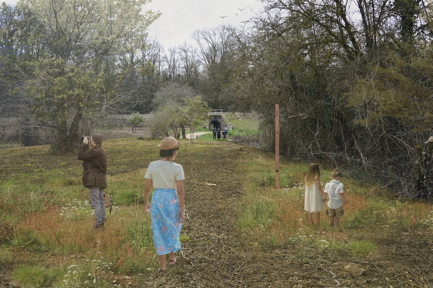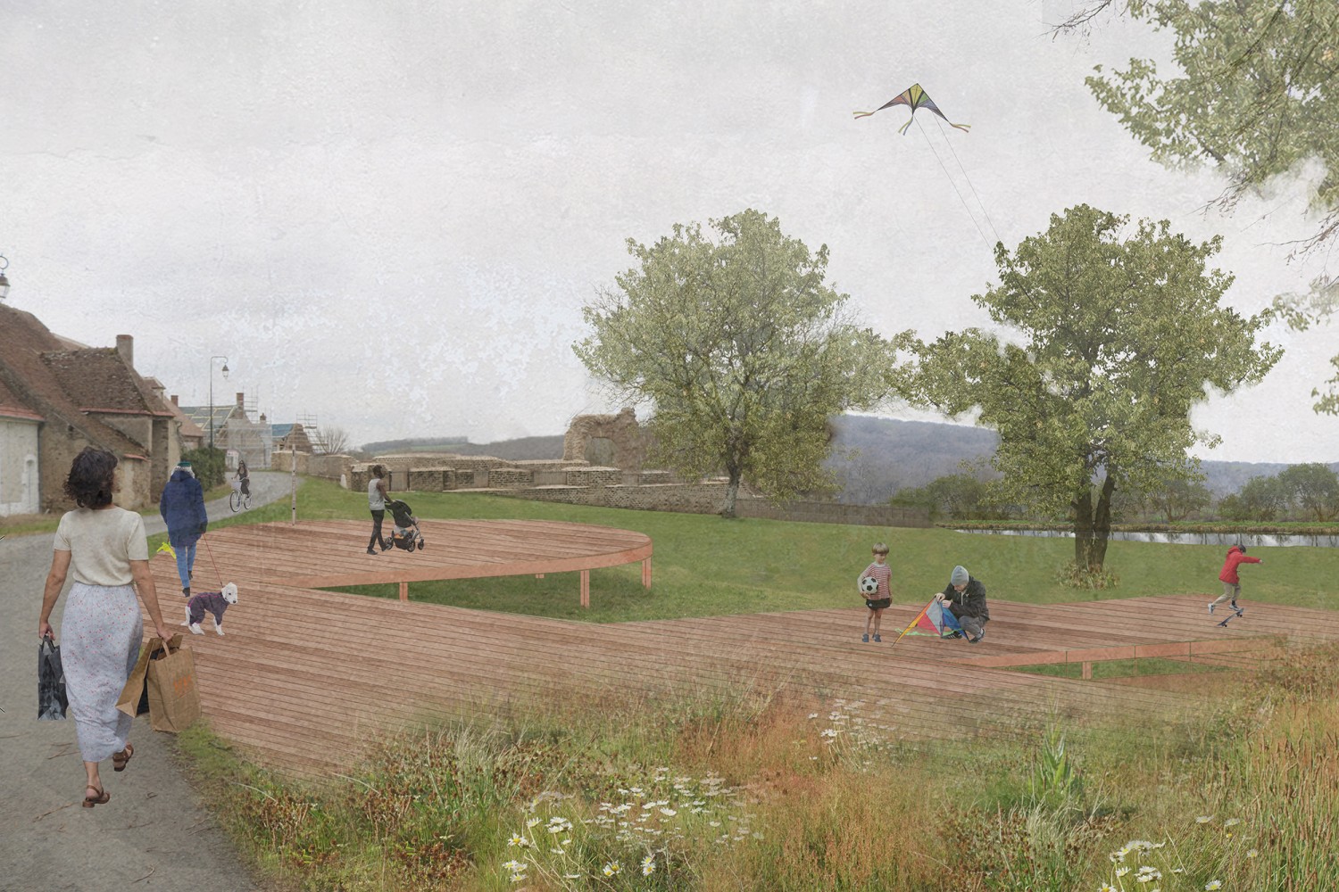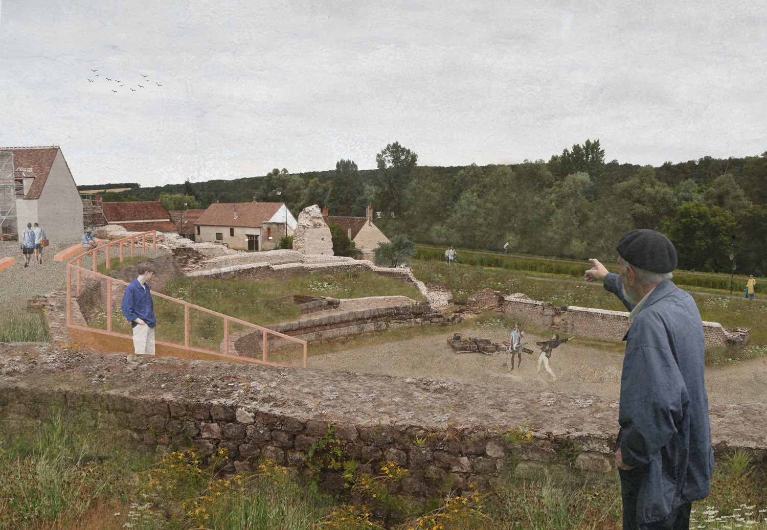 Les communes de Drevant et La Groutte, situées en région Centre-Val de Loire, dans le département du Cher, sont l’objet de cette étude. Pour ne pas dépérir face à la concurrence des territoires métropolitains, ces deux villages affichent la volonté de valoriser leur patrimoine afin de renforcer leur attractivité. Implantées sur les deux versants opposés de la vallée du Cher, les deux communes sont liées par une histoire commune, dont les sites les sites hérités les plus remarquables sont l’oppidum des Murettes à La Groutte et le site gallo-romain de Drevant. La première partie de l’étude permet de retracer les différentes étapes de la formation des deux communes. Les implantations historiques successives ont toutes su mettre à profit les richesses naturelles du site, telles que la topographie et la présence de l’eau. C’est ce patrimoine de la ressource et le paysage qui lui est associé, que le projet cherche à valoriser. Dans un second temps, l’étude propose une balade le long de la vallée, et une traversée depuis ses hauteurs, pour saisir la configuration territoriale des deux communes. Cela permet d’identifier leurs différentes entrées et la spécificité de leur portion paysagère. Enfin, cette vallée génère une certaine attractivité, avec le passage de nombreux sentiers touristiques départementaux ou régionaux, auquel le projet va chercher à s’accrocher. L’étude aboutie a la proposition d’un projet consistant en la création d’un nouveau parcours à Drevant et La Groutte. Celui-ci prend la forme d’une boucle qui intègre les différents sites patrimoniaux, les espaces publics, les services existants, et des équipements propices à la mutation. Sur cette boucle sont identifiés six sites structurants où des interventions architecturales et paysagères sont proposées. Si elles participent largement au développement d’une activité touristique, ce n’est pas leur finalité première. En effet, elles visent avant tout à améliorer le cadre de vie des habitants. Ainsi, ces aménagements ne se focalisent pas sur un ensemble d’objets à restaurer, mais considèrent plutôt les sites comme des pièces paysagères qui s’insèrent dans le théâtre géographique de leur vallée.Commanditaire(s) de l’étude