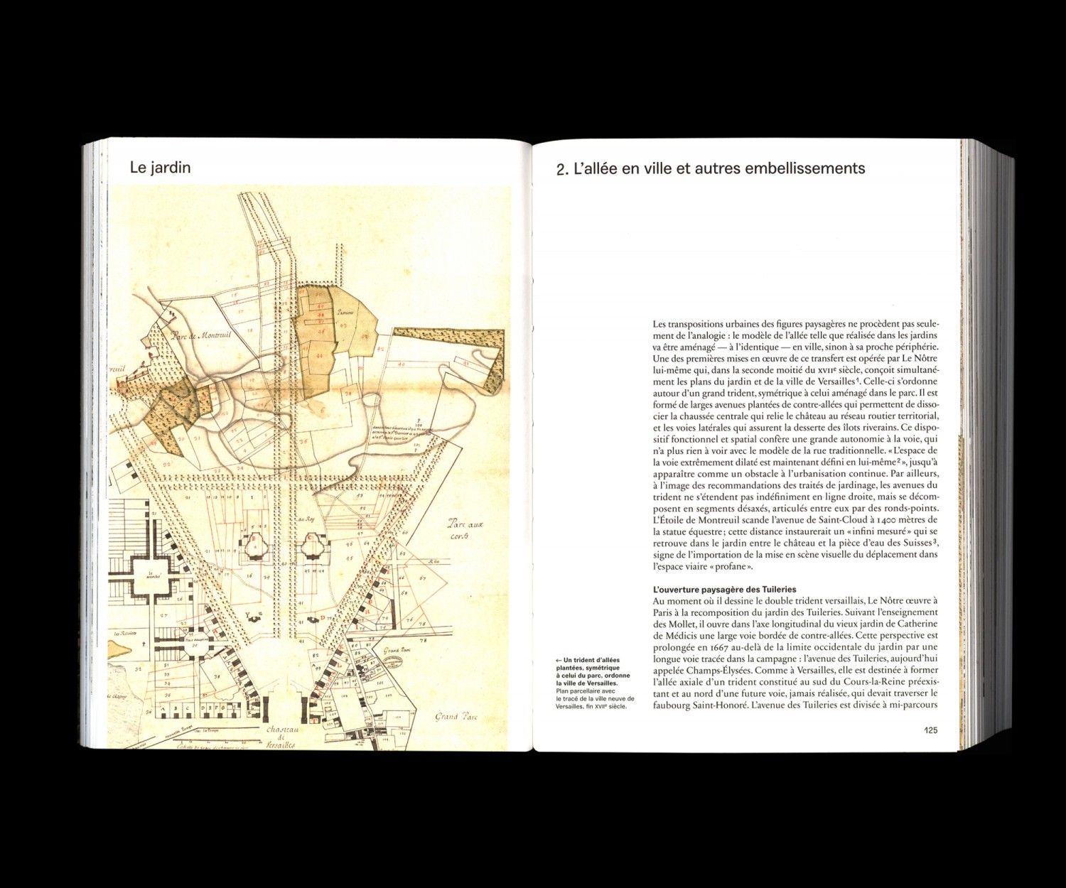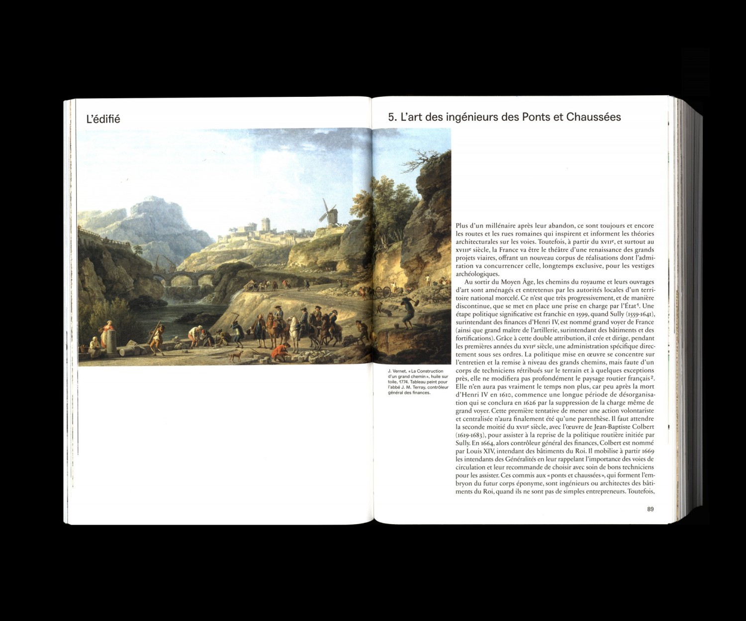 Le prisme de la voie permet alors de révéler, par une série de « coupes en long » qui couvrent de longues périodes (paradigmes de l’édifié, du jardin et du flux), une tradition qui associe étroitement les savoirs et les objets des architectes, des ingénieurs, des paysagistes et des urbanistes, considérés aujourd’hui comme autant de domaines distincts. Cette publication se présente ainsi comme une somme historique, largement inédite, sur une « architecture du territoire » envisagée comme le socle commun des disciplines de l’aménagement.