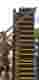 La partie la plus délicate de la construction en pisé réside dans son coffrage. En effet, celui-ci doit résister à la force de compression et aux efforts transmis lors du compactage de la terre qui se fait couche par couche. Un mur en pisé étant décoffrable immédiatement après sa construction, une partie de notre coffrage était mobile et donc a été relevée dès lors que l’on avait construit approximativement la moitié de la fontaine. À noter également, les couches de pisé étaient régulièrement séparées par des couches de mortier chaux / sable qui, en surface, permettent traditionnellement de limiter le processus d’érosion du pisé.