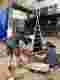 Alors que la nuit était déjà tombée, nous avons finalement décoffré toute la fontaine dans la soirée de vendredi soir. Afin de finaliser la construction, il est nécessaire de couvrir la réalisation en tête car, comme on dit dans le domaine, une construction en terre crue résistera si elle a de bonnes bottes et un bon chapeau.