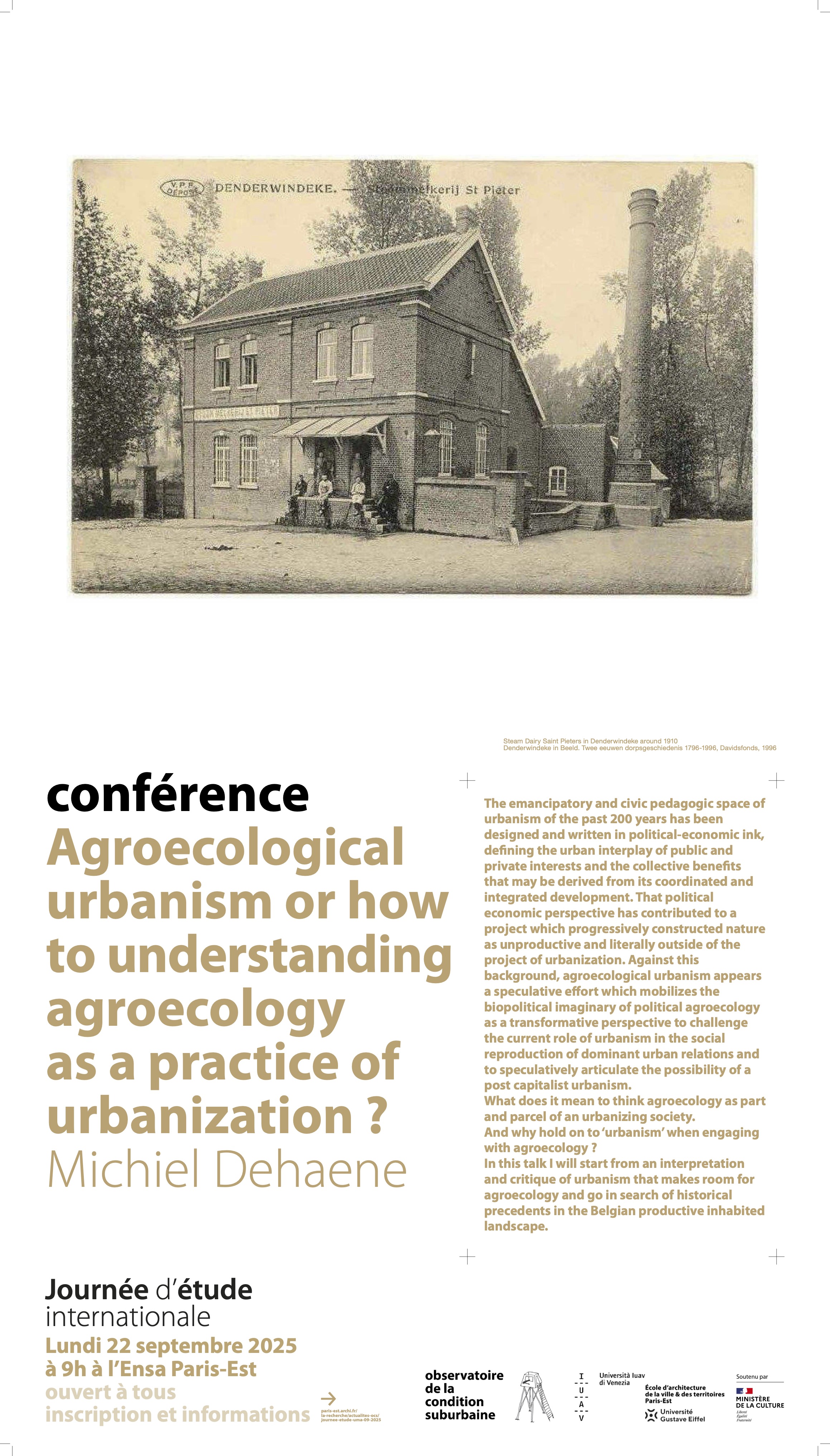 In this talk I will start from an interpretation and critique of urbanism that makes room for agroecology and go in search of historical precedents in the Belgian productive inhabited landscape.