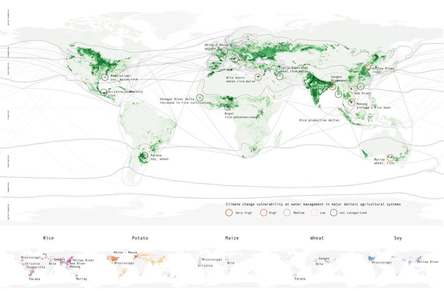 This contribution reflects on the spatial disconnection between food systems and the delta territories that once sustained them. Drawing on research in the rice fields of the Mekong and the potato fields of the Rhine - Meuse deltas, this paper builds on Agroecological Urbanism and Delta Urbanism approaches aiming to tackle the question of agroecological transition through a critical reading of infrastructure, landscape, and time. The focus lies not only on what has been built, but on what has been disassembled: the relationships between soil, water, cultivation, and collective life.