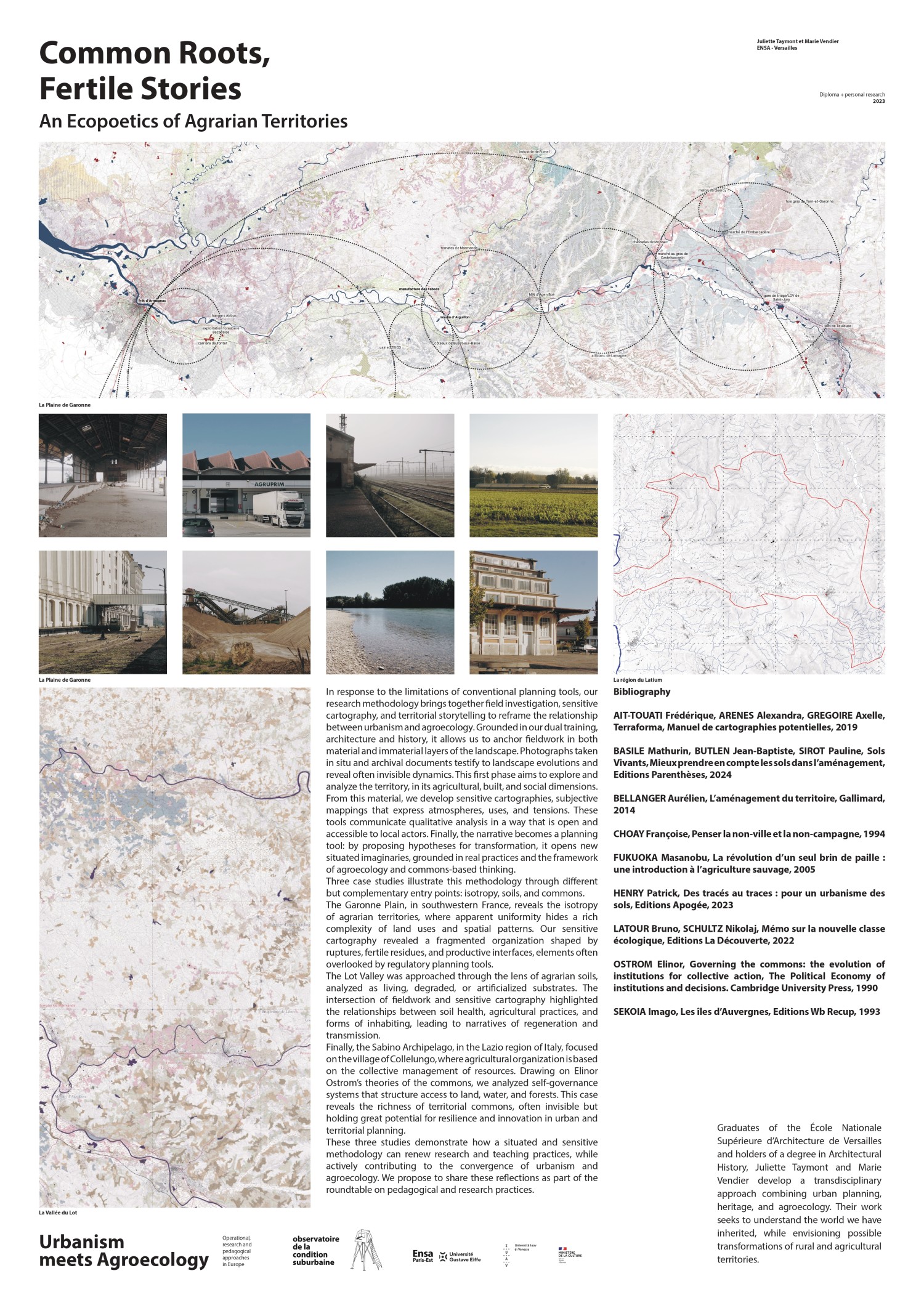 The Lot Valley was approached through the lens of agrarian soils, analyzed as living, degraded, or artificialized substrates. The intersection of fieldwork and sensitive cartography highlighted the relationships between soil health, agricultural practices, and forms of inhabiting, leading to narratives of regeneration and transmission.