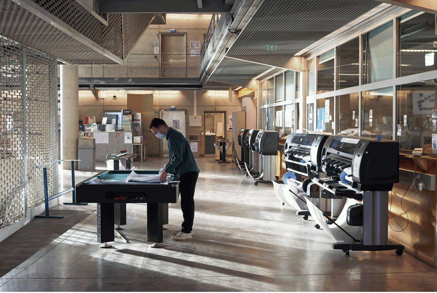 Depuis sa création en 1998, l’École a déjà accueilli une douzaine de tournages, du clip publicitaire au film de cinéma en passant, désormais par les séries TV et web. Ses 6 600 m2 de superficie, ses espaces vitrés lumineux, ses ateliers en double-hauteur et les matériaux bruts qui la caractérisent (béton, béton ciré, aluminium, acier et bois perforé) sont propices à des scénographies variées, dont il est aisé de prendre la mesure lors d'un repérage.