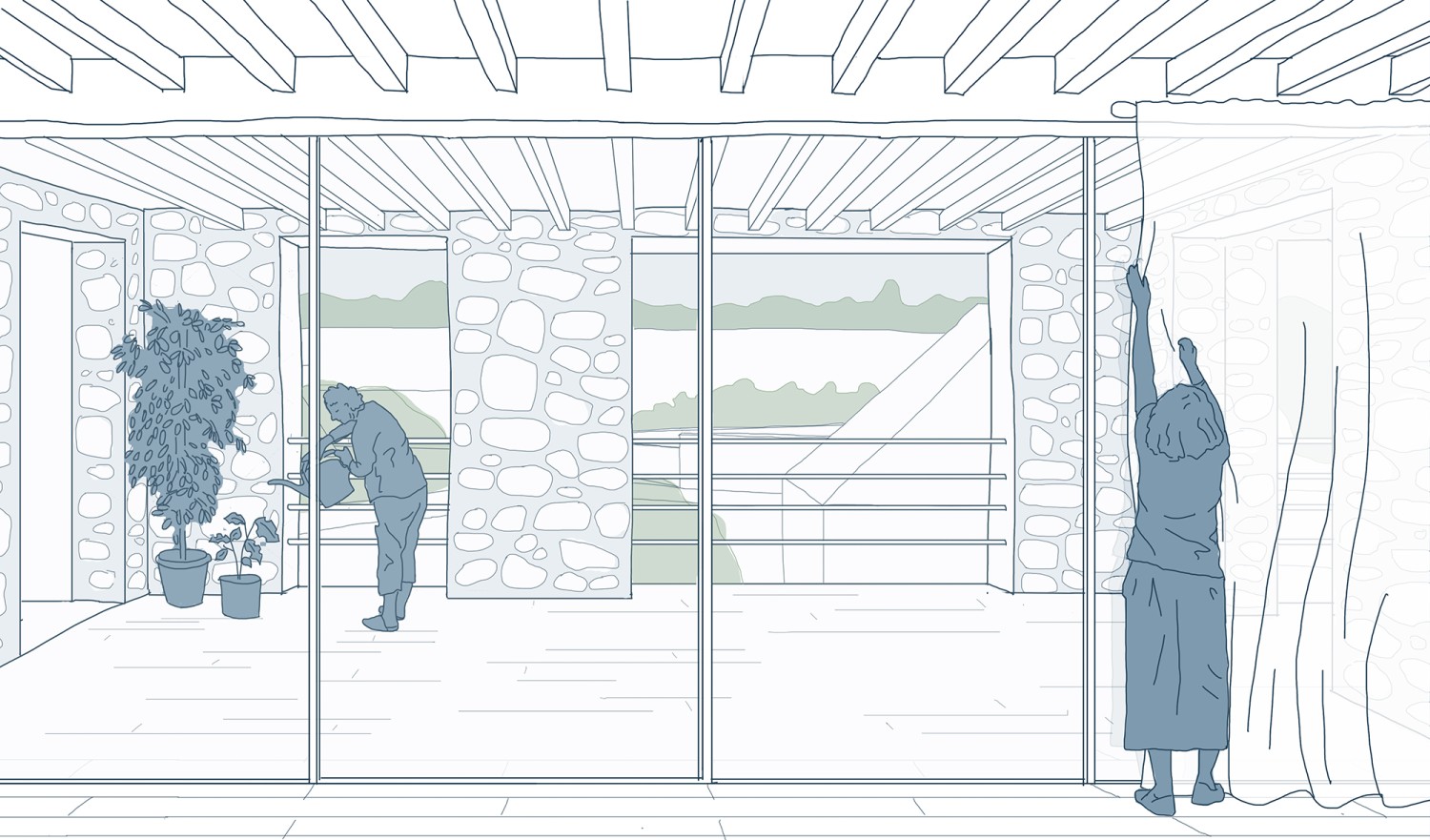 Face à l’ampleur de la vacance dans le centre de Guingamp et à la difficulté que rencontrent les bailleurs sociaux à résorber à eux seuls l’habitat dégradé, nous avançons la dédensification comme possible alternative architecturale et urbaine. Déconstruire le bâti vacant ou dégradé de manière ciblée n’est pas qu’une affaire de chiffres pour accorder offre et demande : les besoins se formulent aussi en termes de qualité d’habitat. Nous souhaitons donc mettre en œuvre cette alternative en nous appuyant sur des éléments sociodémographiques, paysagers et architecturaux. L’intervention que nous esquissons dépasse le domaine public pour s’étendre aux îlots et aux parcelles privés, car nous faisons l’hypothèse que la qualité de l’un participe à celle de l’autre. En libérant l’espace, le projet améliore la desserte et l’éclairage des logements. En désartificialisant les sols, il offre de nouveaux usages dans la ville historique. Pour répondre au contexte opérationnel de Guingamp, le projet nécessite de mettre en place une permanence architecturale formée d’une équipe de concepteurs et d’artisans. Cet atelier de transformation élaborera dans un premier temps un plan guide concerté et basé sur les usages réels existants, puis il accompagnera les Guingampais et les Guingampaises dans la réhabilitation de leur logement. C’est donc un projet en deux temps qui prend forme. À l’échelle de la ville historique et dans la continuité de la politique déjà en place, les pouvoirs publics mèneront une première dédensification pour renforcer des lieux et des usages de la ville historique. Puis, dans un second temps seront réfléchies les potentielles actions des particuliers à l’échelle de leur parcelle. Dans cette étude, nous esquissons quelques hypothèses de transformation.