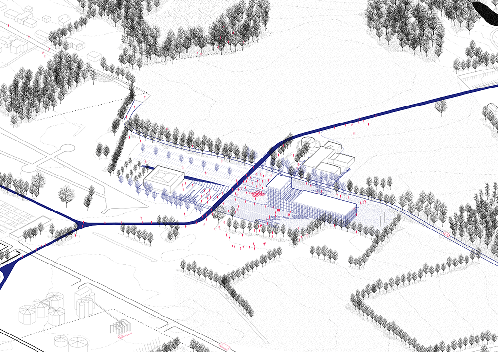 Face aux investigations sur les mobilités de demain et au développement de nouveaux modèles de recherche, l’Institut français des sciences et technologies des transports, de l’aménagement et des réseaux (Ifsttar) a missionné le DSA d’architecte-urbaniste de l’école d’architecture de la ville et des territoires (EAV&T) à Marne-la-Vallée dans le but de proposer un aménagement de son site de Nantes-Bouguenais (Loire-Atlantique) qui lui permette à la fois de devenir plus attractif à l’échelle de la métropole, de développer des équipements scientifiques expérimentaux, et de s’affirmer comme acteur de premier plan dans l’aménagement du territoire de la métropole nantaise. Accueillant un programme d’envergure métropolitaine plongé dans un contexte périurbain, le site prend aujourd’hui la forme d’une enclave installée sur un foncier d’État, engendrant un certain nombre de ruptures avec son contexte. L’enjeu est alors d’interroger le rapport d’ouverture et de fermeture du site. Pour retrouver un ensemble de continuités naturelles mais aussi dans le but de valoriser la présence d’acteurs locaux qui pourraient permettre à l’Ifsttar d’affirmer sa position d’institution territorialisée et de proposer le développement d’un campus, via un aménagement régulé de son site bouguenaisien. Entre compréhension d’un territoire riche mais fragile, initiatives programmatiques et stratégies d’aménagement, le présent projet tentera de donner tous les éléments nécessaires à l’Ifsttar pour être force de proposition quant à l’aménagement de son site et prendre à bras le corps la question foncière qui dicte son évolution depuis plusieurs décennies.