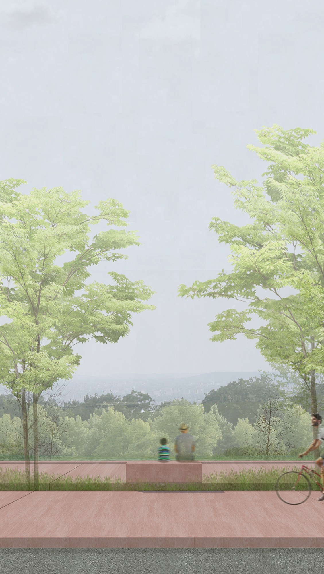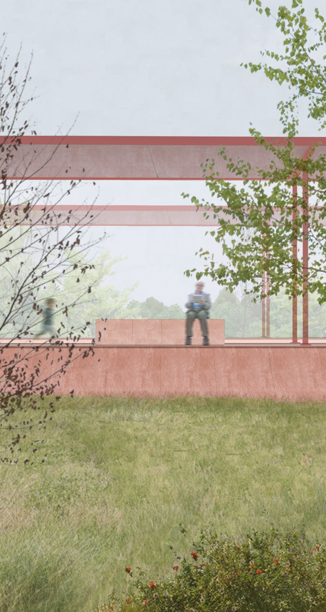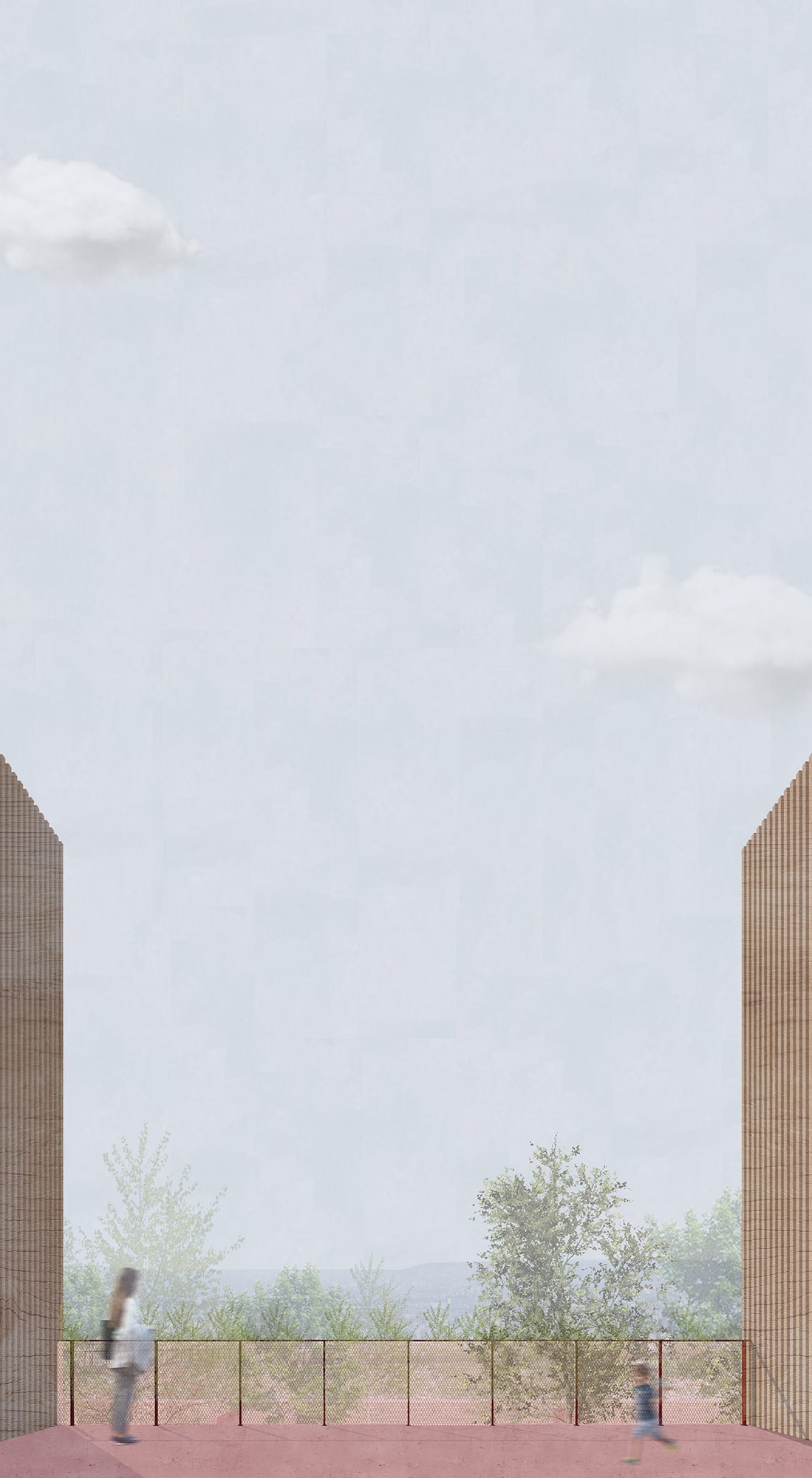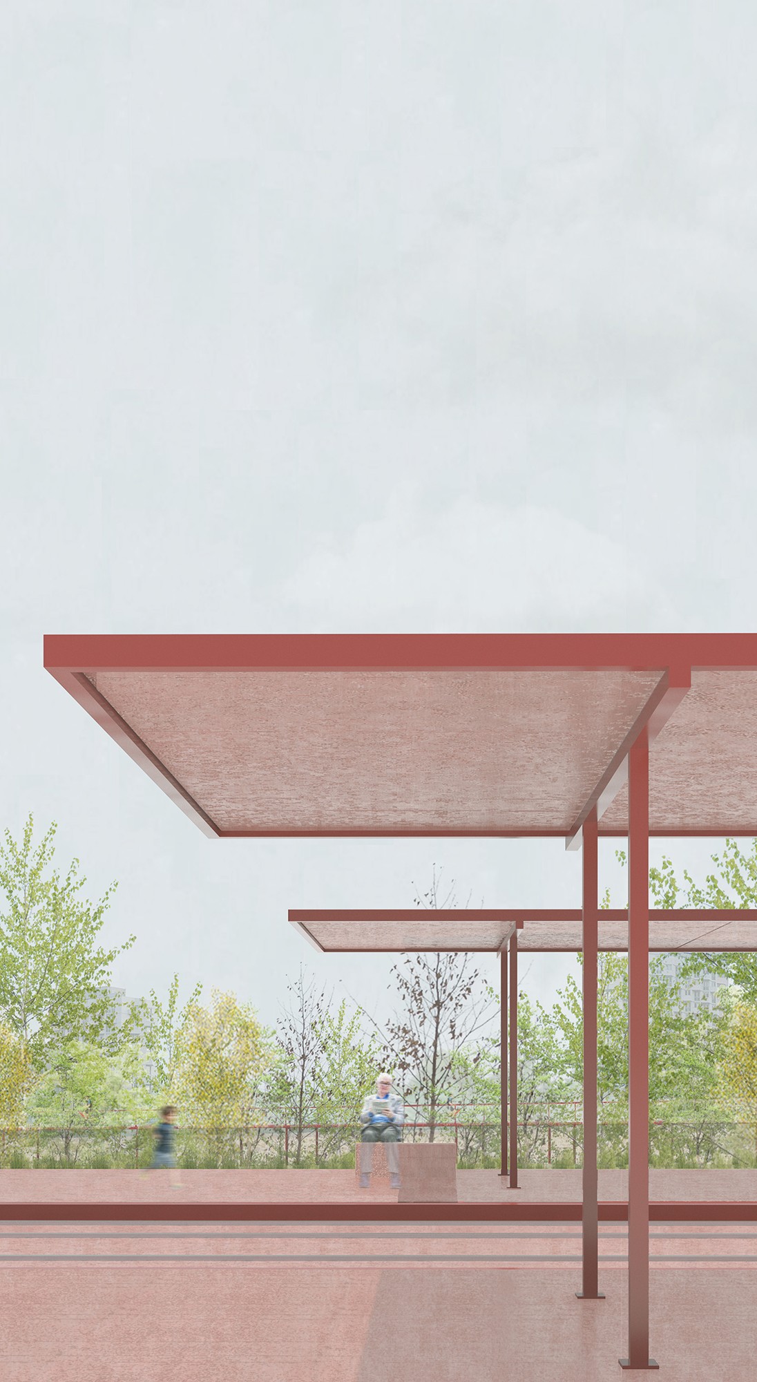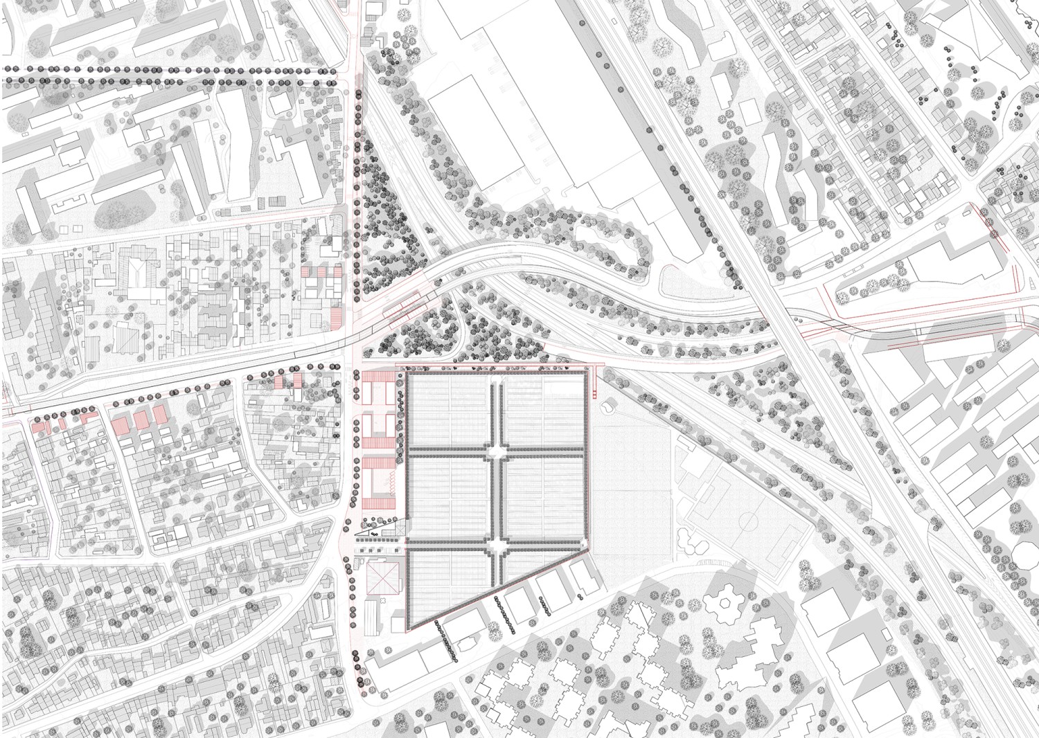Infrastructure de mobilité majeure, le tramway T1 sera prochainement prolongé vers l’Est francilien. De Noisy-le-Sec, il rejoindra Val de Fontenay, pôle métropolitain en pleine intensification aménagé par la SPL Marne au bois. C’est aux abords et dans le prolongement de cette étude qu’elle souhaite penser l’aménagement de l’arrêt Victor Hugo et d’en comprendre ses enjeux. Située sur l’actuel rond-point de l’avenue Victor Hugo au bord de l’autoroute A86 et à la rencontre de trois communes, Montreuil, Rosny-sous-Bois et Fontenay-sous-Bois, sa situation particulière au cœur d’un site de confins rend cet arrêt singulier. L’arrivée de cette nouvelle mobilité est alors l’opportunité d’explorer le rôle que peut tenir ce site dans la métropolisation contemporaine de l’Est parisien, autant à l’échelle territoriale qu’implique le tramway qu’à l’échelle locale qu’implique son arrêt. Cette étude est l’occasion de réévaluer les relations de synergie entre des grands pôles de mobilités tel que Val de Fontenay et des arrêts secondaires qui composent le maillage dense des transports publics du Grand Paris. A partir de l’objectif de la commande d’explorer les devenirs de l’arrêt de tramway Victor Hugo le projet développe deux intentions : d’une part proposer une alternative à la densification et la valorisation foncière qui sont à l’œuvre aux abords des arrêts de transport public, d’autre part, de considérer la ligne de tramway comme un levier pour l’aménagement de l’espace public avoisinant, offrant un espace ouvert salutaire en marge des grandes polarités métropolitaines.