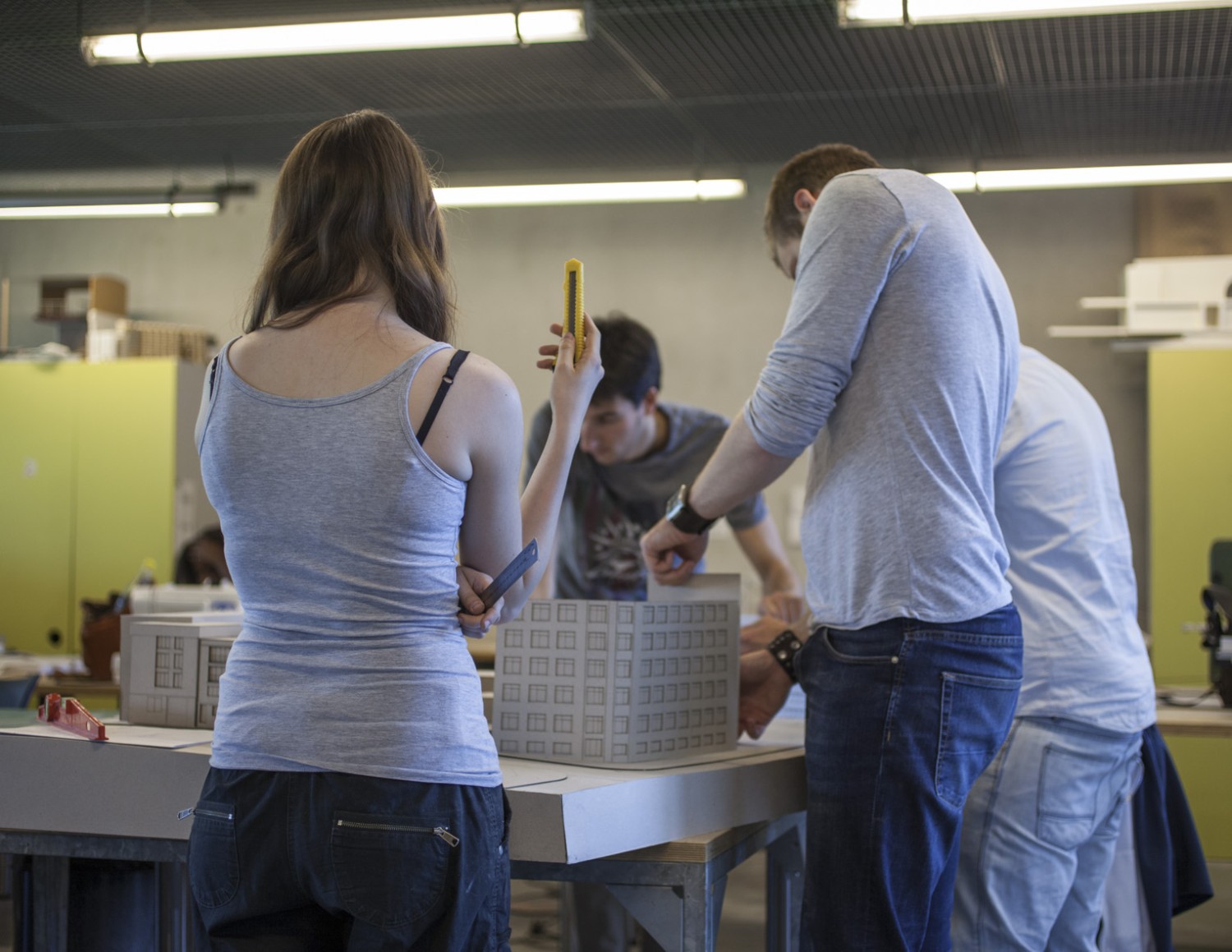 L'École d'architecture de la ville & des territoires possède un atelier maquette, lieu de découverte, d’apprentissage et d’expérimentation des matières, des assemblages, des détails et des finitions. L’encadrement est assuré par un agent titulaire ébéniste de formation et des moniteurs recrutés chaque année.