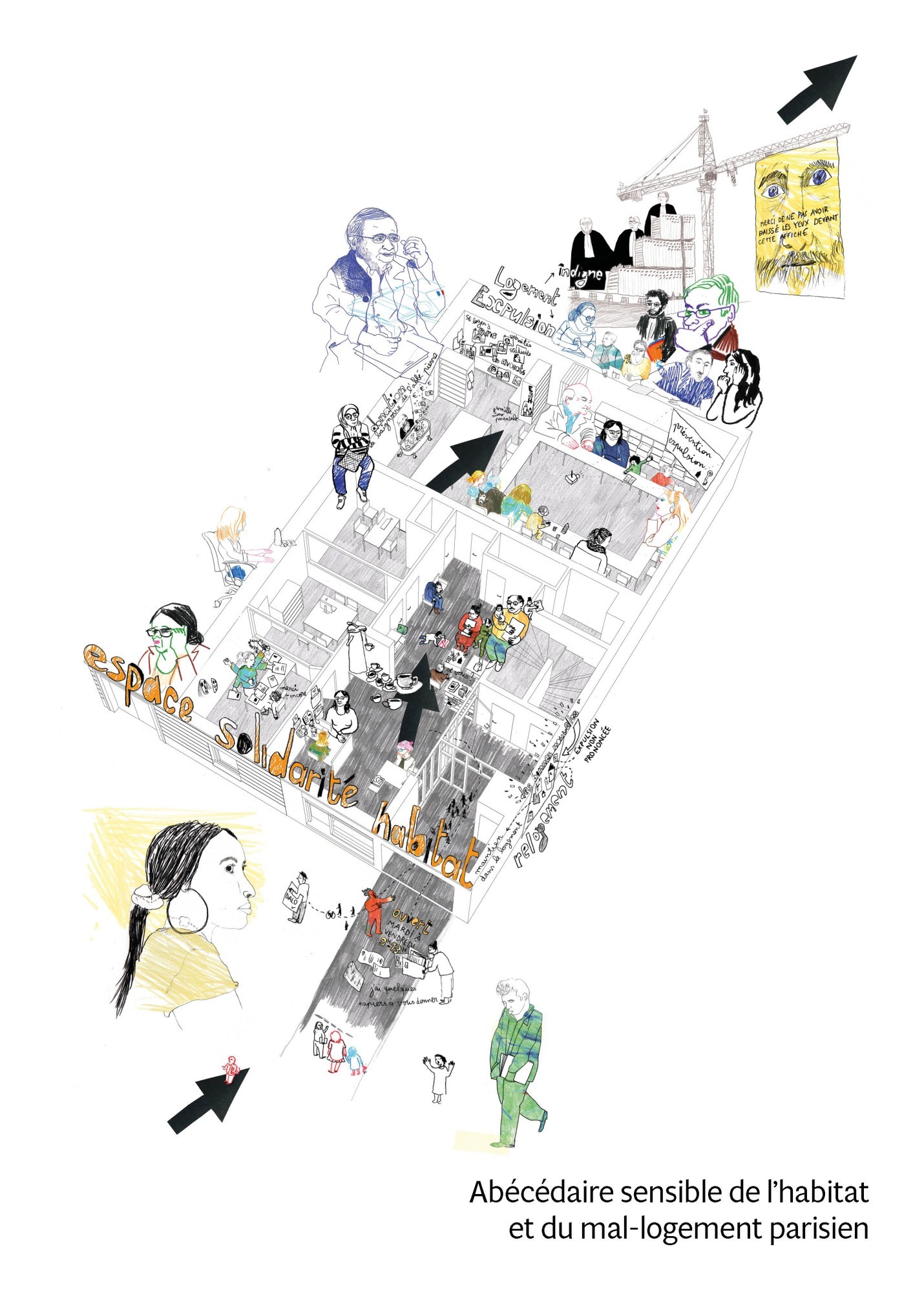 Pendant deux ans de recherche-action, Anouk Migeon et Carole Chaix ont porté leurs regards en tant que dessinatrices et architecte sur les femmes et les hommes victimes de la crise du logement en Île-de-France, un territoire marqué par des situations extrêmement aiguës. Ce projet à destination du grand public s’est construit avec les personnes accompagnées par la Fondation Abbé Pierre, à travers son Espace Solidarité Habitat.