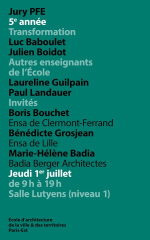 à 09:00Salle LutyensEnseignants : Luc Baboulet Julien Boidot Autres enseignants de l'École : Laureline Guilpain Paul Landauer Invités : Boris Bouchet, Ensa de…
