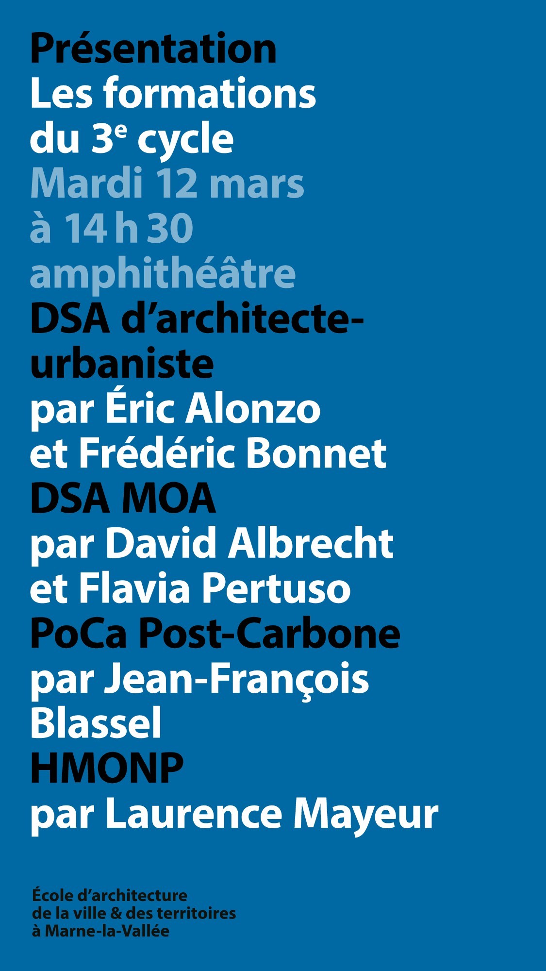 L'École organise une présentation des formations du 3e cycle (post-master) selon l'ordre suivant :