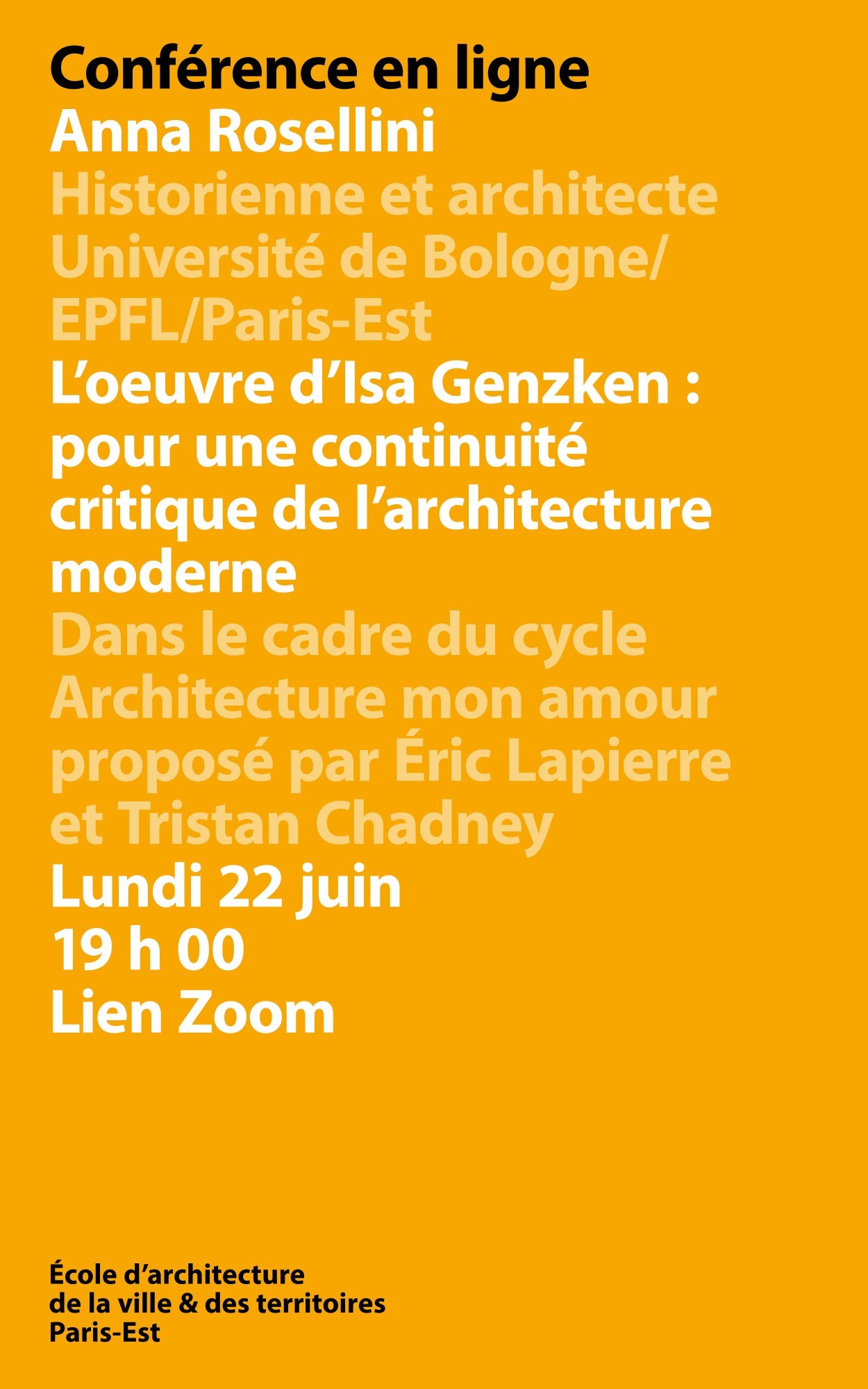 Dans le cadre du cycle de conférences Architecture mon amour, l'architecte Anna Rosellini nous donne une conférence exceptionnelle intitulée "L’oeuvre d’Isa Genzken : pour une continuité critique de l’architecture moderne".