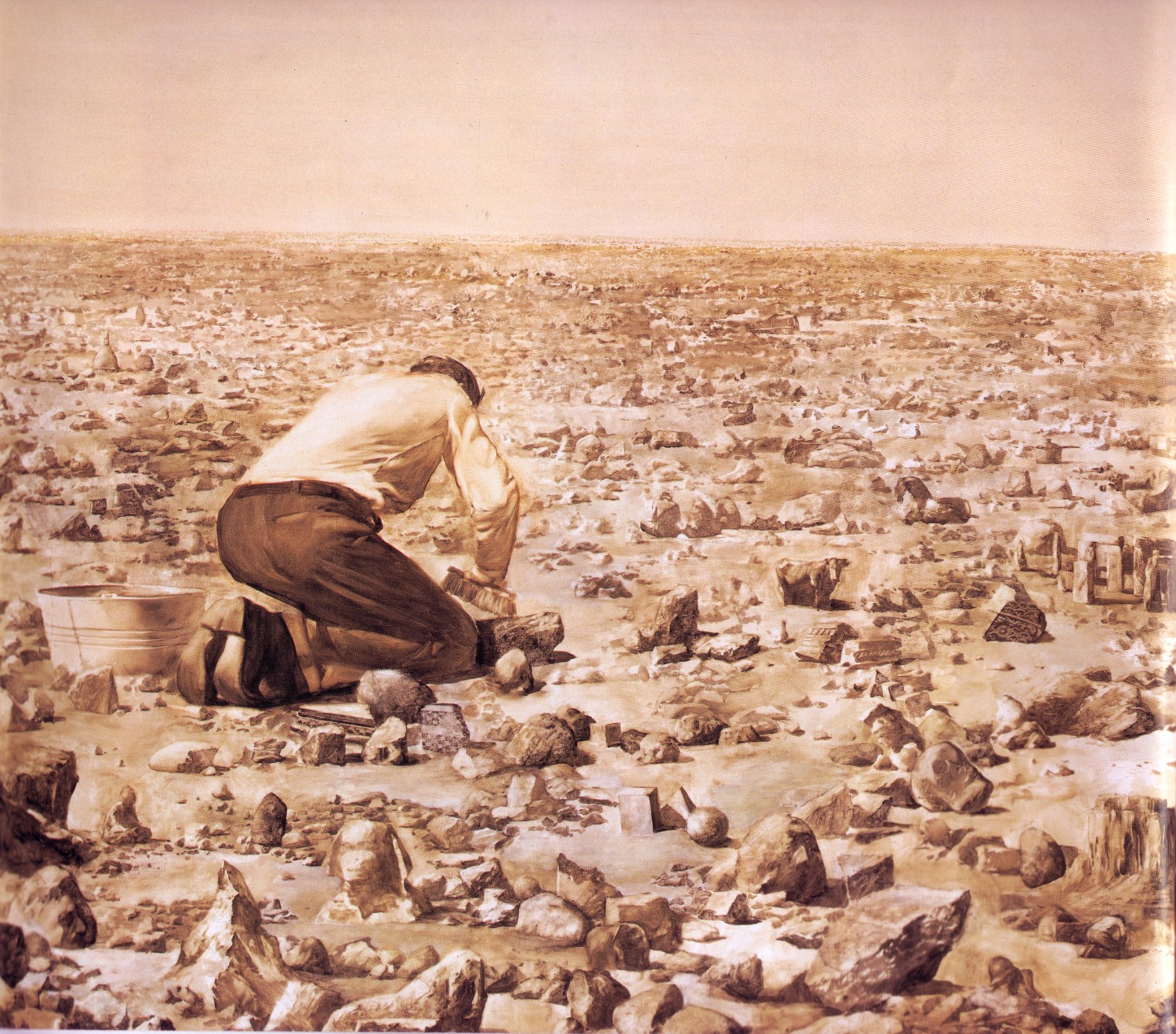 Illustration → Mark Tansey, Robbe Grillet Cleansing Every Object in Sight, 1981