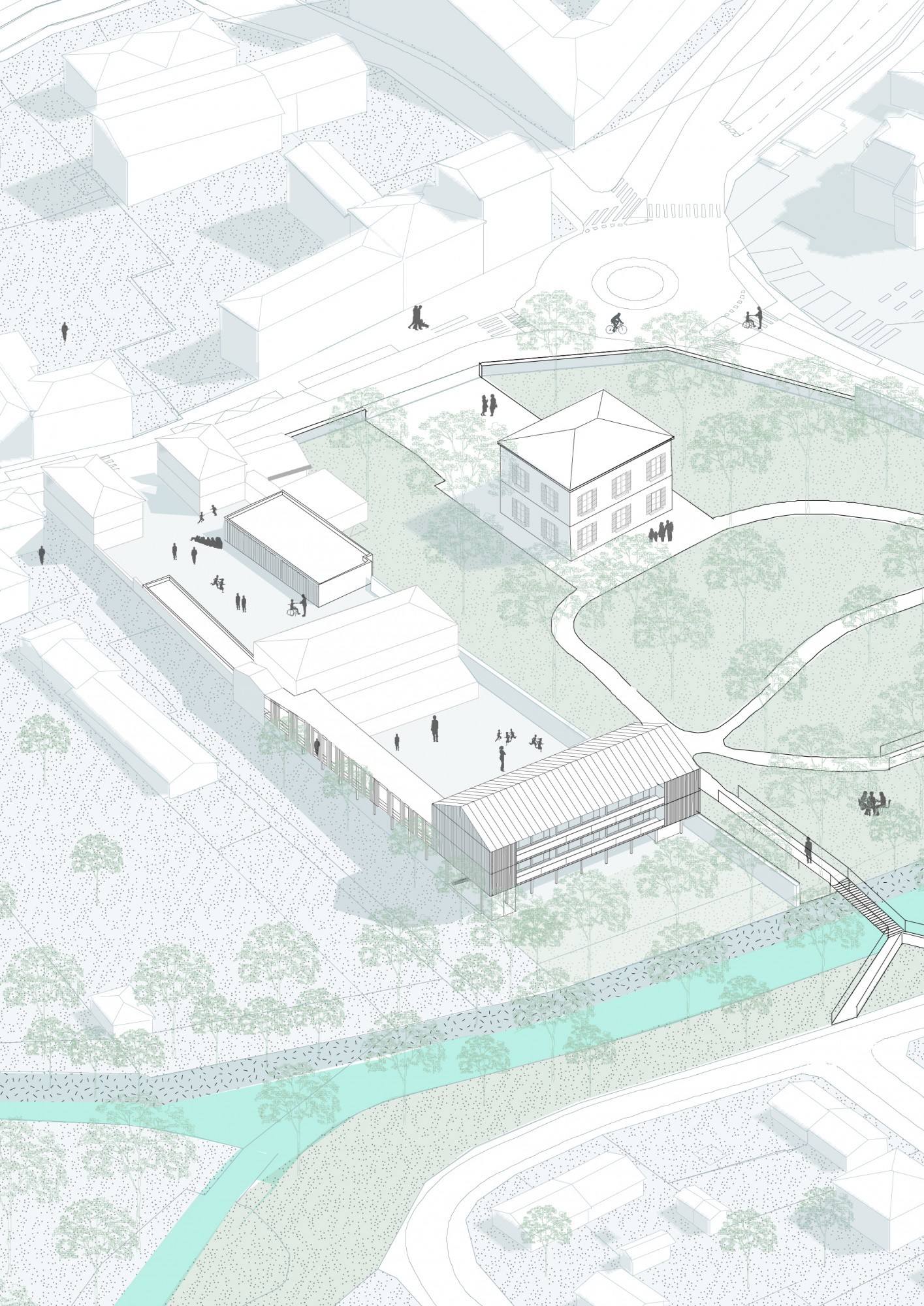 Quiconque traverse Lizy-sur-Ourcq, Mary-sur-Marne ou Ocquerre ne peut échapper au dialogue entre la vallée de l’Ourcq et la pyramide de l’imprimerie Didier Mary. Cette figure rappelle la période prospère des années 1990, loin de la situation actuelle des trois communes. Les symptômes de ce territoire aujourd’hui fragilisé sont connus : dévitalisation du centre-ville, paupérisation, chômage, perte d’emplois et d’attractivité économique. Au travers de cette étude, la Direction départementale de Seine-et-Marne prend en main le développement du territoire de l’intercommunalité, accompagné par la communauté de communes du Pays de l’Ourcq. L’objet de la commande souhaite retrouver la cohérence d’un territoire « péri-métropolitain », chahuté entre les logiques locales et celles du Grand Paris. Le rayonnement intercommunal prend son point de départ autour de la gare, à la croisée de toutes ces échelles territoriales. Comment un travail sur les accès et la cohabitation des modes de déplacement pourrait-il devenir vecteur d’une nouvelle cohérence territoriale depuis la gare ? Appréhender ce projet urbain à travers une complémentarité des circuits, équipements et paysages du quotidien permettrait-il de retrouver proximités et continuités dans la pratique locale du Pays de l’Ourcq ? En suivant le principe de ne pas « séparer la ville des lieux de celles des liens », six situations de projet tendent vers cet équilibre : resserrer les « liens » tout en renforçant les « lieux ». Redéfinir l’identité du lieu de la mobilité (la gare), tisser une continuité urbaine et paysagère (l’îlot « interface »), connecter et protéger l’économie locale (le site de l’imprimerie), retrouver le paysage de la vallée de l’Ourcq (la promenade du Plateau), dynamiser le centre-ville (fusion d’écoles et équipement culturel) : tels sont les objectifs pour favoriser les pratiques quotidiennes de ce territoire diffus.
