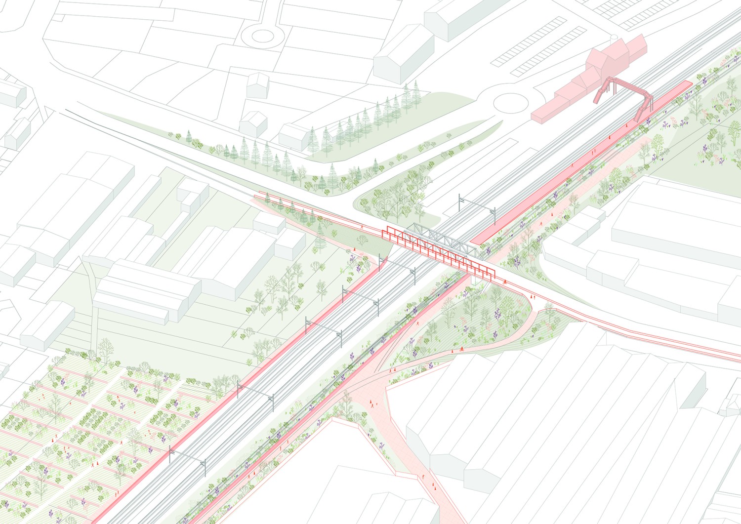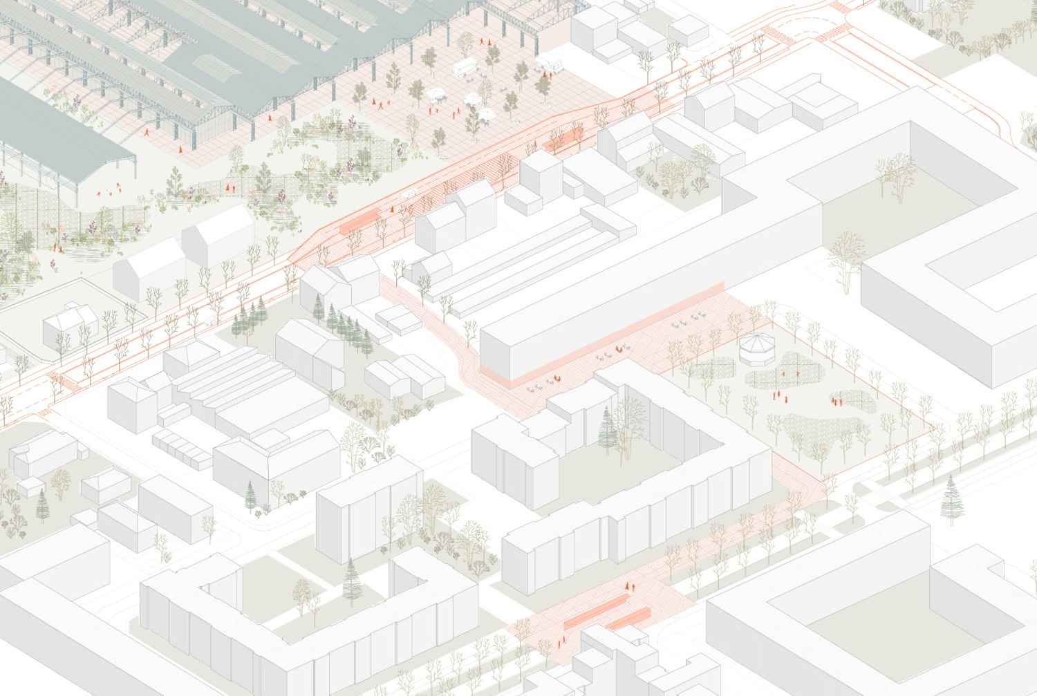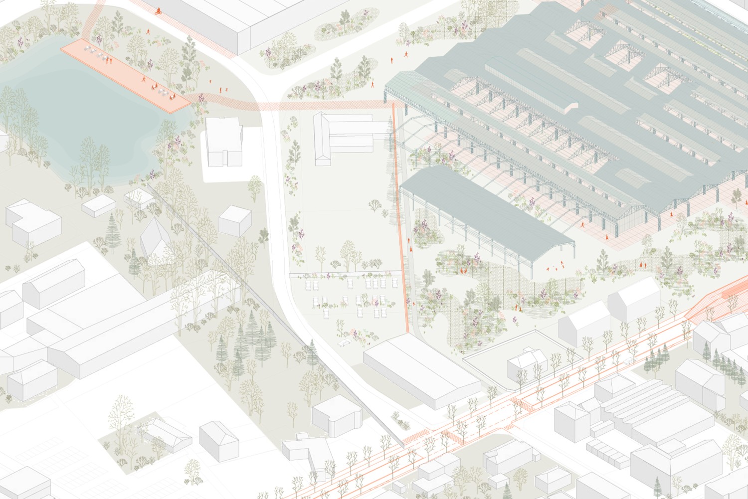 Cette étude porte sur le projet de réhabilitation de halles industrielles situées à Woippy, en Moselle. Abandonnées depuis plus de vingt ans, ces halles font partie d’un riche patrimoine de friches industrielles qui témoignent de l’activité sidérurgique et métallurgique du bassin mosellan. À travers la conception d’un équipement métropolitain, alliant programmes alimentaires et de loisir et réinvestissant les structures industrielles existantes, cette étude explore trois enjeux contemporains : la revalorisation des friches, la question de l’alimentation et l’identité paysagère. Avec une approche qui navigue entre les échelles, ce projet propose de mettre les halles Sollac dans une perspective active de restructuration de la commune, en exploitant les potentiels de cette friche comme un levier pour une transition architecturale, urbaine et territoriale.