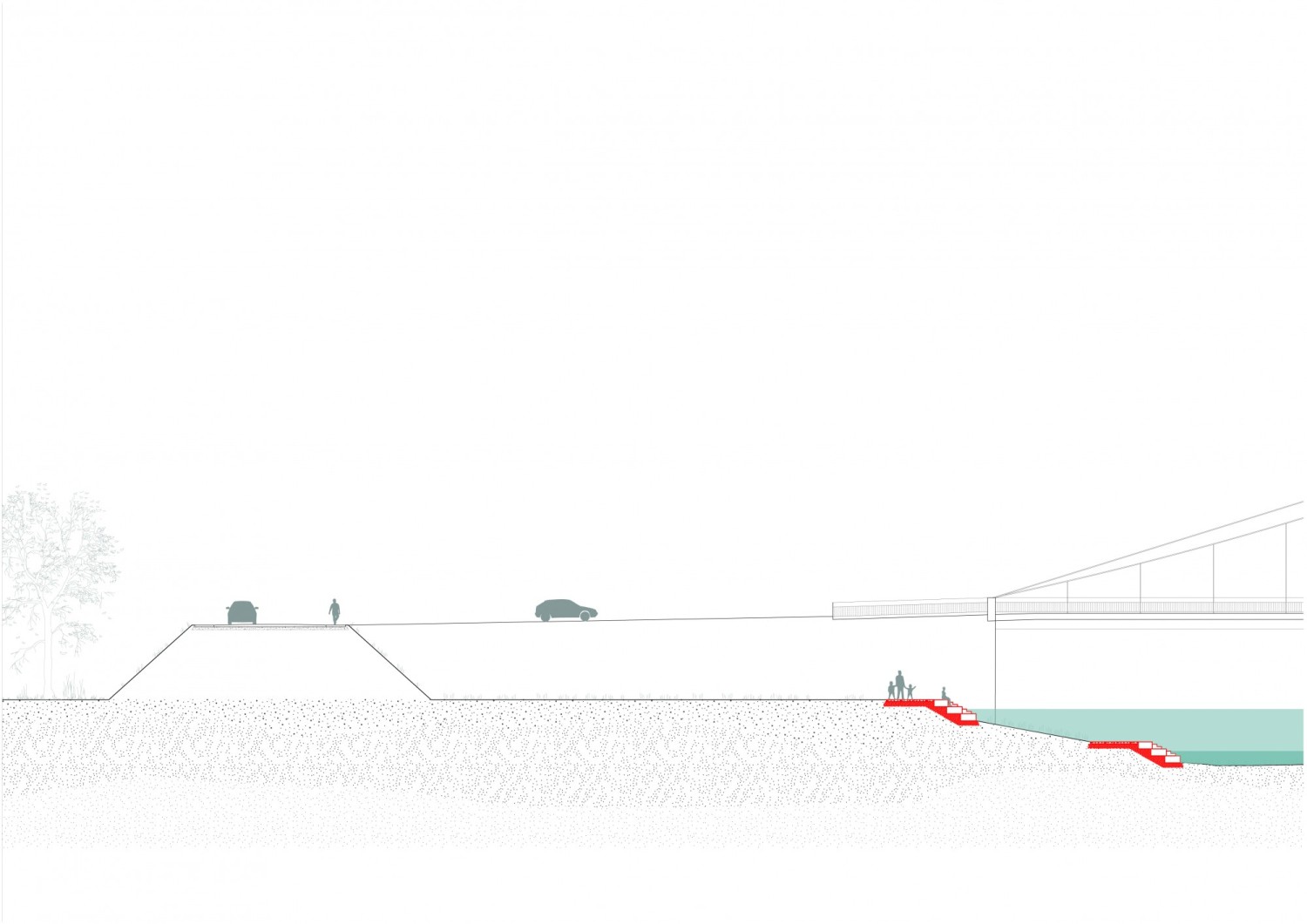 Le dessin du parcours étendu permet de révéler les différentes composantes du paysage ligérien. Le projet est ainsi conçu autour de la mise en valeur des ouvrages hydrauliques régulateurs des cours d’eau, comme les levées et les canaux. Il se fonde aussi sur les tracés issus de l’évolution du fleuve et qui constituent la richesse du paysage de la plaine alluviale. Des chemins adaptés aux différentes saisonnalités du lit majeur de la Loire se dessinent ainsi, soulignant le contraste entre ce paysage souple et instable et la pérennité des infrastructures qui s’y sont établies.