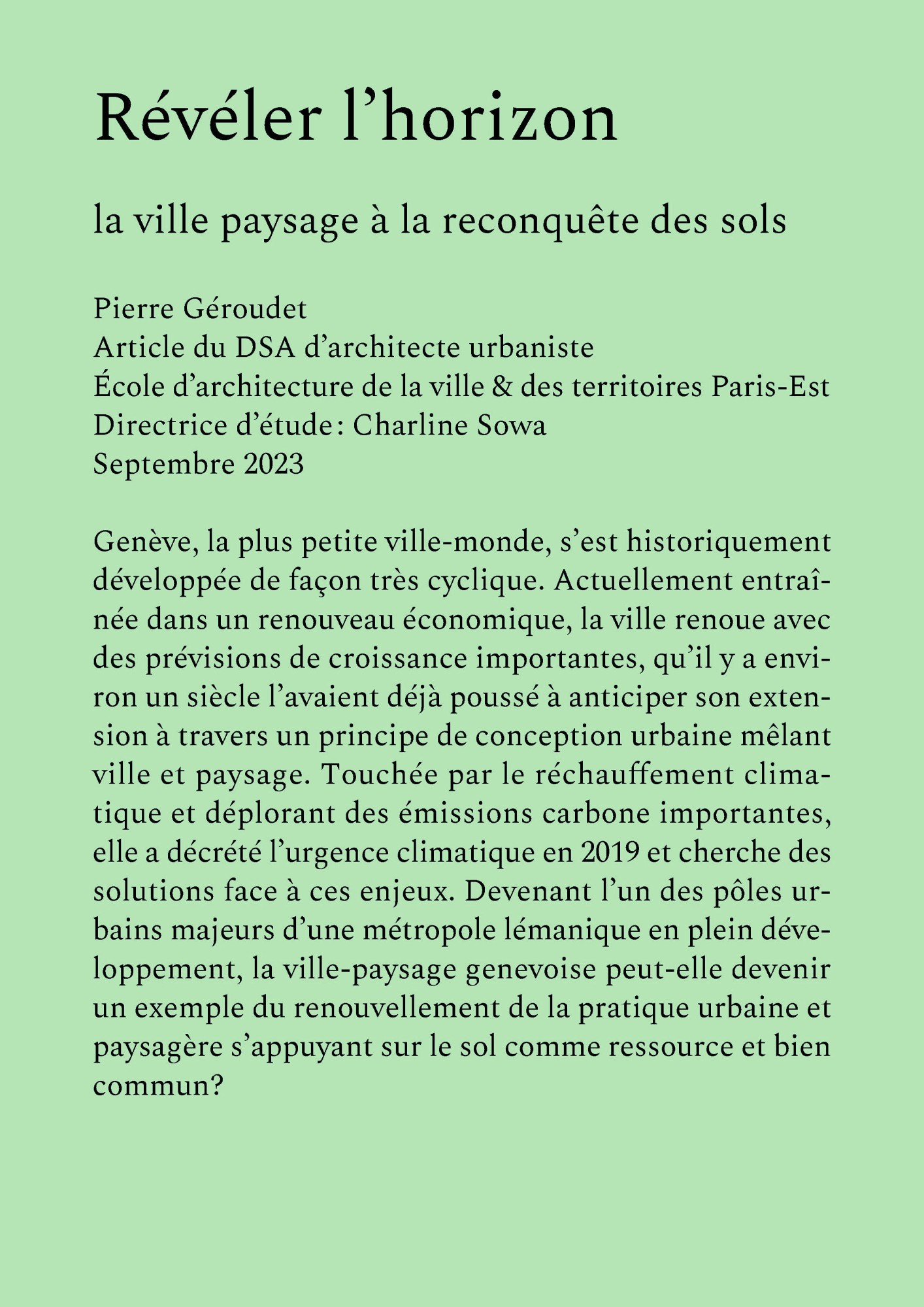 Révéler l’horizon