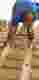 La partie la plus délicate de la construction en pisé réside dans son coffrage. En effet, celui-ci doit résister à la force de compression et aux efforts transmis lors du compactage de la terre qui se fait couche par couche. Un mur en pisé étant décoffrable immédiatement après sa construction, une partie de notre coffrage était mobile et donc a été relevée dès lors que l’on avait construit approximativement la moitié de la fontaine. À noter également, les couches de pisé étaient régulièrement séparées par des couches de mortier chaux / sable qui, en surface, permettent traditionnellement de limiter le processus d’érosion du pisé.