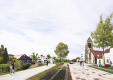 Le projet urbain se développe le long de la rue Gérard de Nerval, sur les parcelles dont la capacité de mutation est supérieure à celle du tissu pavillonnaire. En choisissant de bâtir d’un côté de la rue pour libérer l’autre, le projet crée les conditions d’existence du parc, et offre aux habitants un cadre de vie hybride entre ville et campagne. Construits sur le modèle de la ferme Sainte Opportune, bâtiment agricole emblématique du passé rural d’Othis, les immeubles de logements constituent de petits microcosmes qui combinent les avantages de la maison individuelle et les usages de la vie urbaine. L’espace public est rendu aux piétons et le front commercial articulé autour du nouveau parvis de l’Église offre à la commune une nouvelle centralité. Au nord de la commune, un nouveau quartier de maisons collectives et d’espaces partagés s’installe sur une parcelle agricole dans la continuité du parc. Cette partie du projet anticipe les potentiels étalements urbains, en démontrant qu’il est possible de construire une forme d’habitat alternative à la maison individuelle générique, qui répond à la fois aux questions de la densité urbaine et aux enjeux environnementaux.