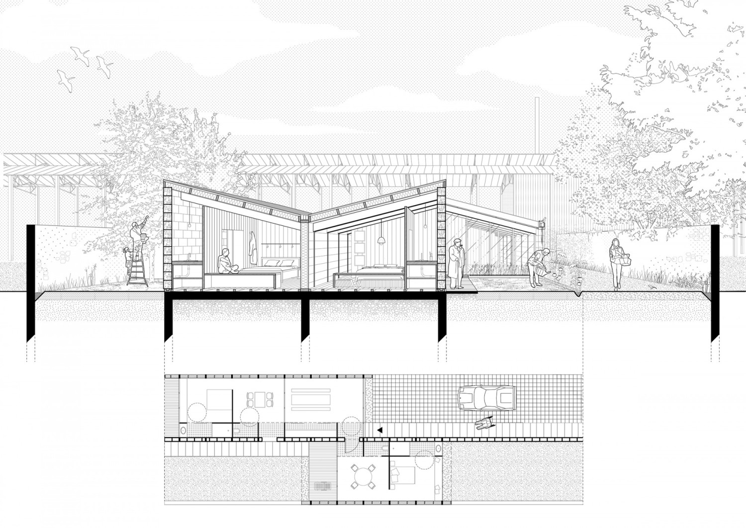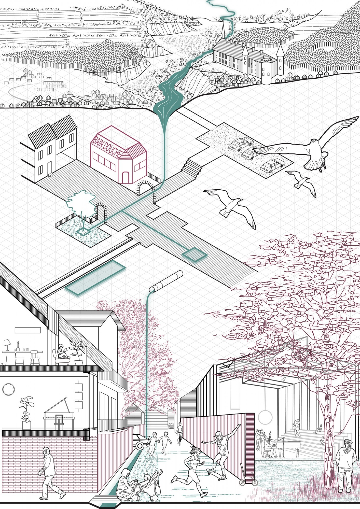 Les petites villes en France sont de plus en plus délaissées au profit des plus grandes zones urbaines et de leurs périphéries. Lapalisse, dans l’Allier, ne fait pas exception. Hier, ville-étape de la route des vacances, elle peine aujourd’hui à trouver une nouvelle identité et à attirer de nouveaux habitants. La présente étude lutte contre l’idée reçue selon laquelle il n’y aurait pas de perspective d’évolution possible pour les territoires ruraux et vise ainsi à renouveler l’attractivité de Lapalisse par une stratégie globale et paysagère. En choisissant de s’affranchir des limites communales, l’étude a permis de mieux cerner et comprendre le territoire dans lequel s’établit la ville. La vallée de la Besbre devient dès lors un support majeur à son développement. Elle renferme en effet de multiples ressources locales ainsi qu’un riche patrimoine guidant la redéfinition de l’identité de Lapalisse. Suivant cette logique, le réaménagement des espaces urbains s’impose comme prérequis à l’établissement de nouveaux habitants. Une fois reconnecté au grand paysage, l’habitat existant, transformé et nouvellement créé attire finalement les Lapalissois de demain.