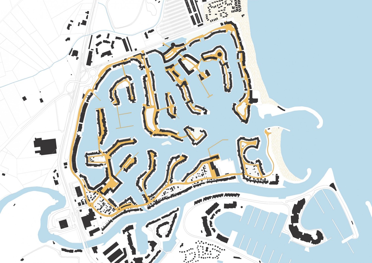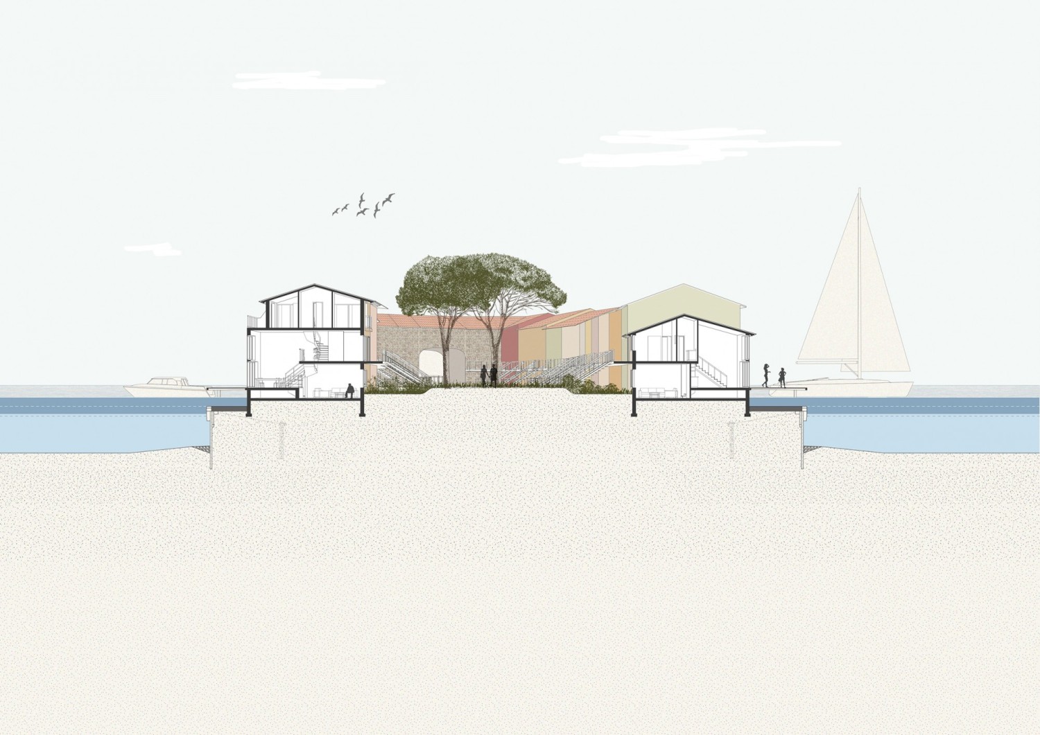 Situé au fond du golfe de Saint-Tropez, le littoral de la commune de Grimaud a été urbanisé tardivement. Dans les années 1960, les terres marécageuses de l’estuaire de la Giscle attirent l’attention de l’architecte François Spoerry. Ce dernier, également marin, en fait l’acquisition dans le but d’y bâtir une cité lacustre : Port Grimaud. Dès lors, la côte maritime connaît une mutation rapide autour d’un tourisme alliant pratiques balnéaires et navigation de plaisance. Sur-aménagé, le littoral présente désormais d’importants dysfonctionnements écologiques et urbains. Le changement climatique, en cause dans la hausse du niveau marin, amplifie les risques liés à la submersion, à l’érosion et aux crues. Dans une situation critique, le littoral de Grimaud n’a plus la capacité de s’adapter naturellement. Son patrimoine sédimentaire et architectural est en péril. Au-delà des risques menaçant ses habitants, le tourisme, principale ressource économique du territoire, est fragilisé. Cette étude entend développer une stratégie pour accompagner ces mutations d’ici à l’horizon 2100. Son objectif est de permettre au territoire de composer avec les aléas naturels. L’adaptation aux dynamiques liées à l’eau est un levier de projet. Le territoire pourrait ainsi retrouver ses valeurs sociales et écologiques, celles-ci ayant été négligées au cours des dernières décennies. La proposition se fonde sur le retrait, la transparence hydraulique et la valorisation de la cité lacustre pour constituer un littoral inscrit dans toute l’épaisseur du territoire. Cet objectif ne peut être atteint qu’à travers une transition impliquant des étapes intermédiaires. Par son évolution, le paysage grimaudois propose un nouveau genre de tourisme et accepte les effets du changement climatique.Commanditaires de l’étude