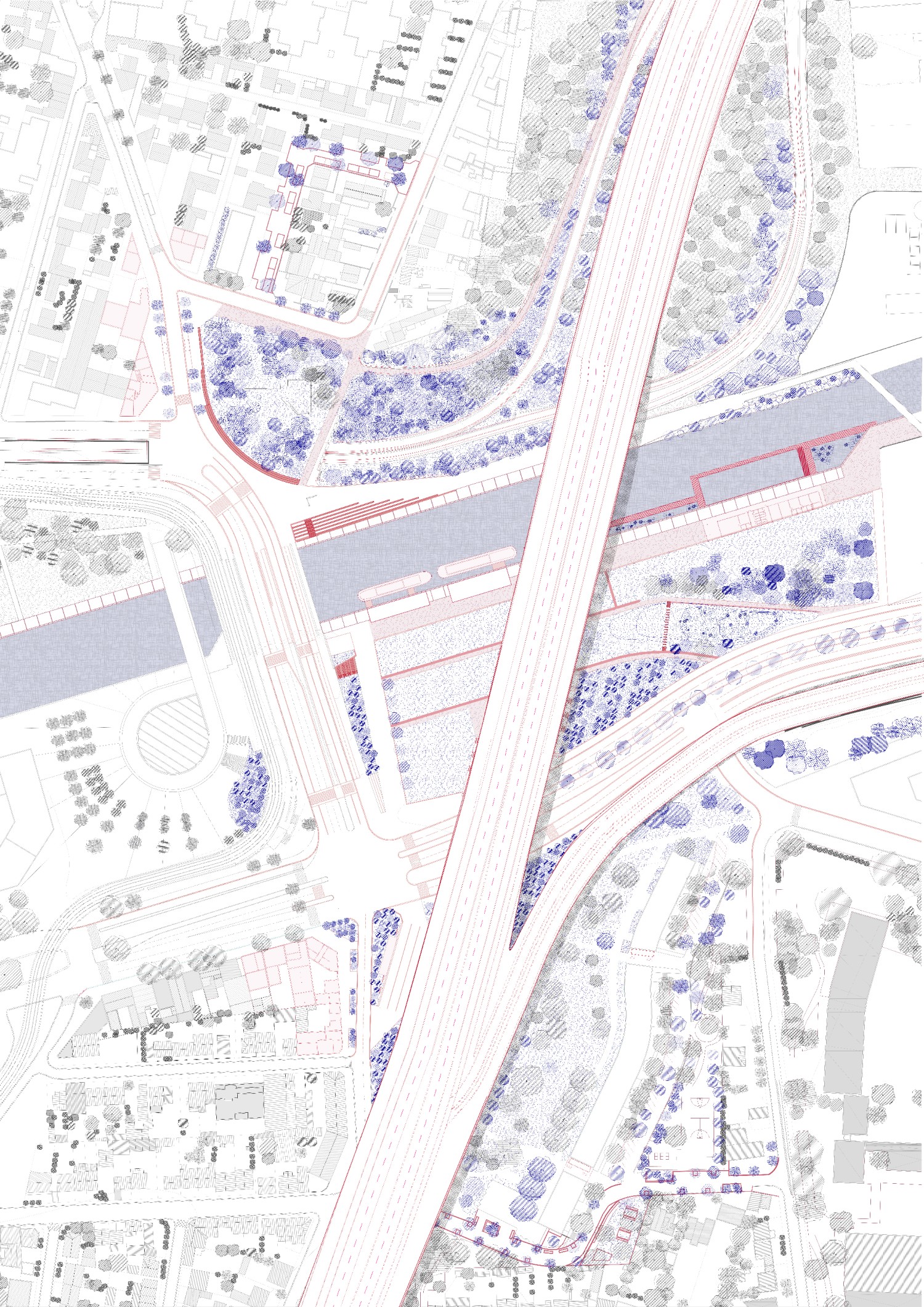 Au croisement d’axes majeurs du Nord-Est parisien dont l’A3 et l’A86, le Pont de Bondy est un point noir des circulations. Vestige de l’ère du tout voiture, il s’apprête à vivre un changement de paradigme avec l’arrivée du métro. Dans cette plaine urbaine dense, découpée par les aménagements automobiles et les délaissés qu’ont imposés l’A3, cette étude propose une approche singulière sur les rapports qu’entretiennent la ville et l’infrastructure autoroutière. Face aux enjeux climatiques et sociétaux auxquels nous sommes confrontés, l’autoroute représente un enjeu de santé publique majeur. En devenant vallée des flux et corridor écologique, l’A3 n’est plus une limite mais un milieu. Une multitude d’aménités et d’espaces publics émergent de cette action, la rendant à la ville.