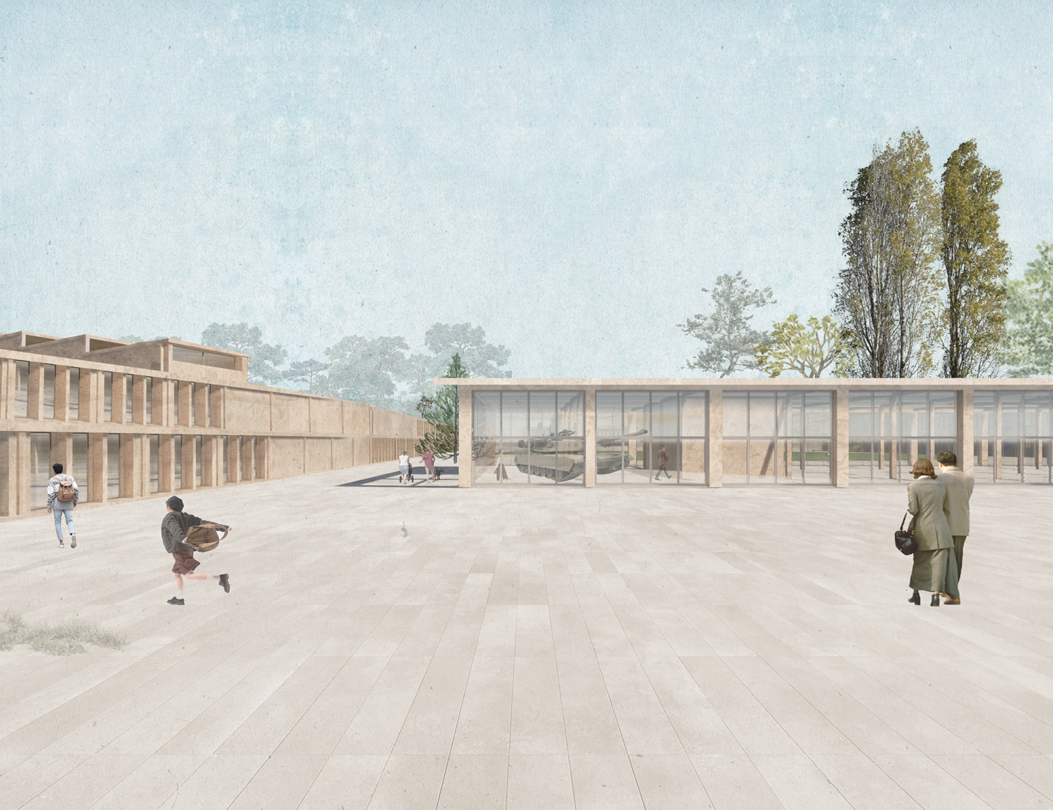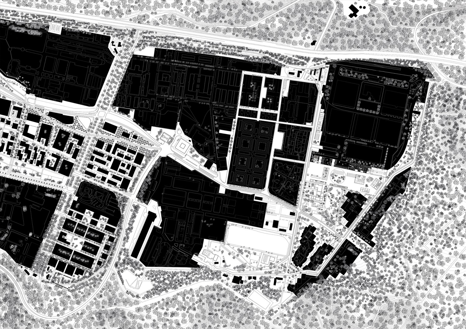 Si Satory Ouest se prépare à l’arrivée du Grand Paris Express, Satory Est reste un camp militaire de première importance. Paysage de pouvoir façonné en contrepoint du château de Versailles, il abrite des bureaux stratégiques, des équipements industriels et des quartiers résidentiels sur un plateau délimité par des infrastructures végétales et ferroviaires. Le métro vient bouleverser l’équilibre de cet îlot discret et pousse l’armée à repenser son occupation des lieux. En dessinant finement les limites de chaque domaine, l’étude s’attache à réinterroger la frontière en tant qu’interface habitée.