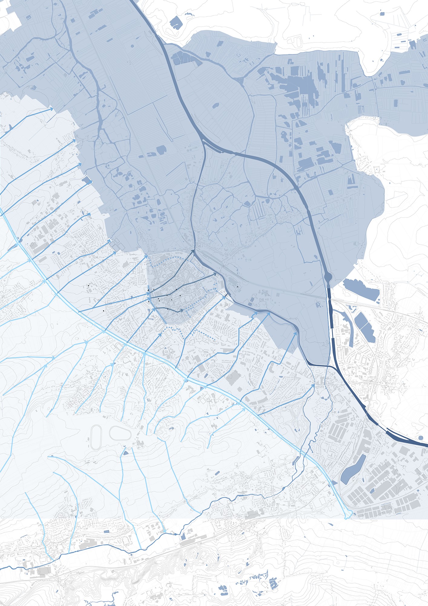 Le territoire audomarois a subi plusieurs transformations à des fins militaires et marchandes. Aujourd’hui, après une série d’inondations marquant à jamais les habitants, il convient d’adapter la ville et ses espaces publics aux enjeux climatiques tout en les utilisant comme supports de nouveaux usages.