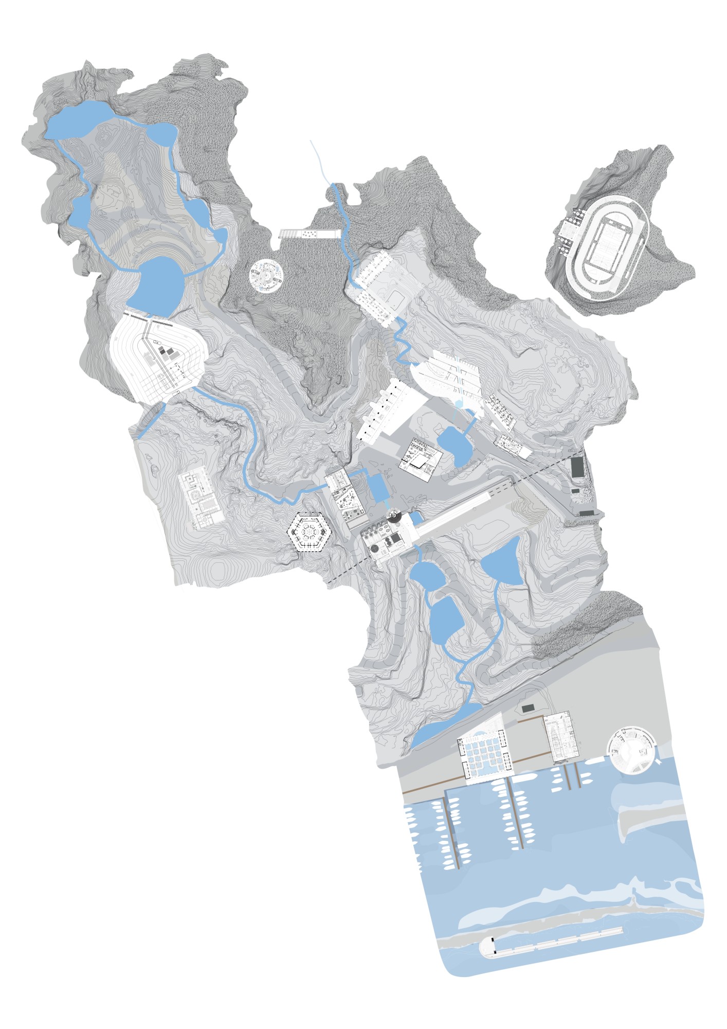 Le site des carrières de l’Estaque, entre la ville dense de Marseille et un paysage non qualifié, rendu aride par l’activité industrielle, constitue le territoire d’exploration des projets étudiants à travers l’élaboration d’un Campus du Climat et de l’Eau. L’objectif est d’évaluer les potentiels d’un tel territoire à offrir des hypothèses viables de développement pour la ville contemporaine et la capacité de l’architecture à réorganiser une situation apparemment illisible. La réflexion collective portée sur les enjeux environnementaux doit également permettre de tracer les contours d’une approche environnementale disciplinaire, au-delà de l’ascétisme d’une démarche passéiste ou du sophisme technologique.
